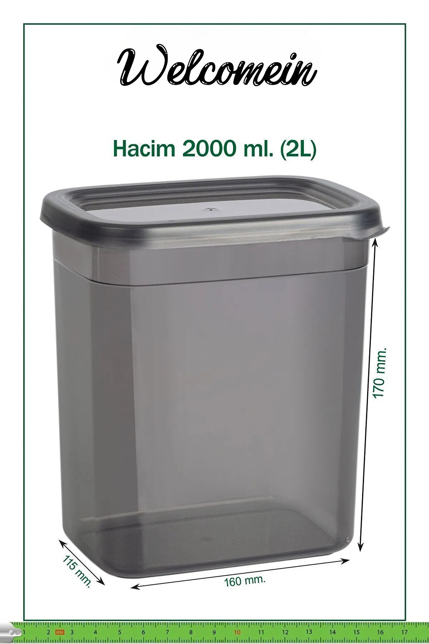 Antrasit (Siyah Şeffaf) Renklidir.; ; Kapağı Çıkarıp Mikrodalgada Kullanabilirsiniz.; ; Tüm Kapaklar Aynı Boydadır Üst Üste Kolayca İstiflenebilir.; ; Bulaşık Makinesinde Yıkanabilir.; ; Buzdolabı Ve Derin Dondurucuda kullanabilirsiniz.; ; 20 Adet Bakliyat Etiketi Hediyelidir.; ; Gıdaya Temasa Uygun Plastikten Üretilmiştir.; ; Darbelere Karşı Ultra Dayanıklıdır Esnektir Kırılmaz.; ; Paket İçeriği : 2000 ml x 12 Adet ; BPA İçermez Sağlığa Zarar Vermez ; Ürün Ölçüleri: 11 x 16 x 17 cm ;
