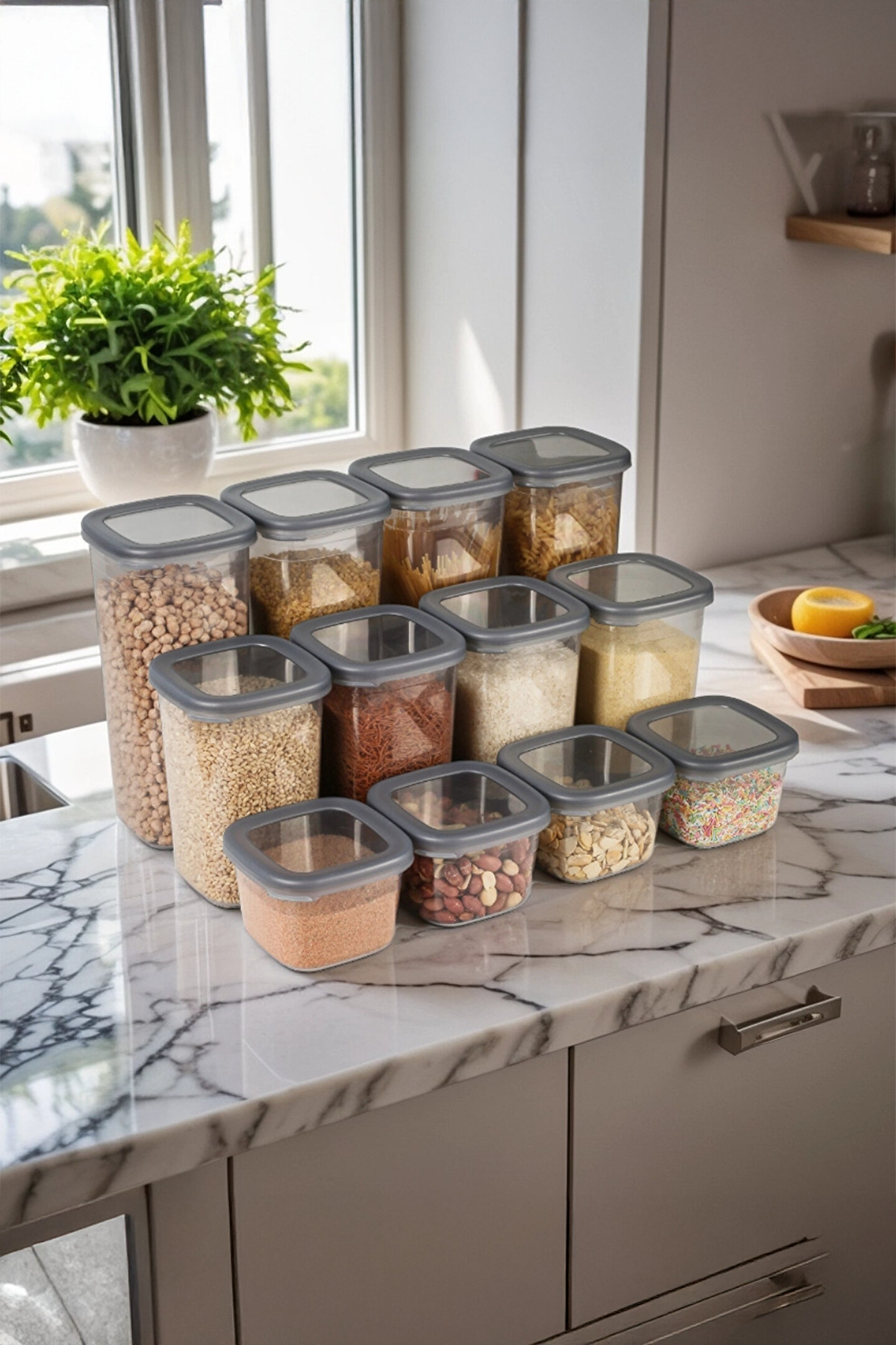 welcomein 12 Adet 24 Parça 550 ml. 1200 ml. 1750 ml. Sızdırmaz Kapaklı Kare Erzak Bakliyat Saklama Kabı Seti