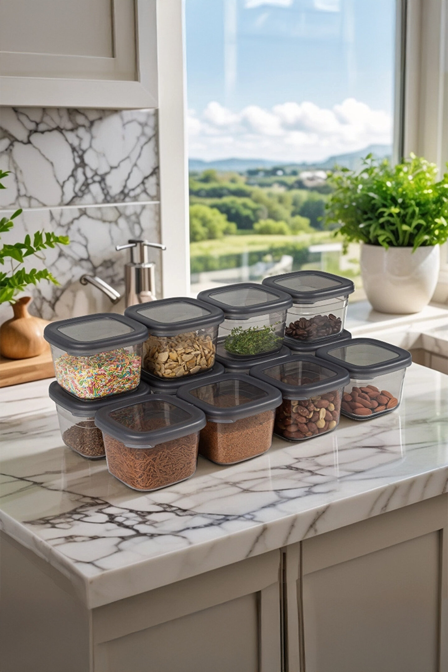 •   Mutfağınızı ve Kilerinizi Düzenlemenize Yardımcı Olur—Mutfağınıza veya kilerinize her gittiğinizde her şeyin düzgün bir şekilde organize edildiğini hayal edin. Artık dağınık değilsiniz, istediğiniz her şeye çok hızlı bir şekilde ulaşabilirsiniz. İstiflenebilir ve yerden tasarruf sağlayan tasarımıyla bu kaplar, mutfak kiler dolaplarınızın her santimini daha verimli kullanmanızı sağlayacaktır.