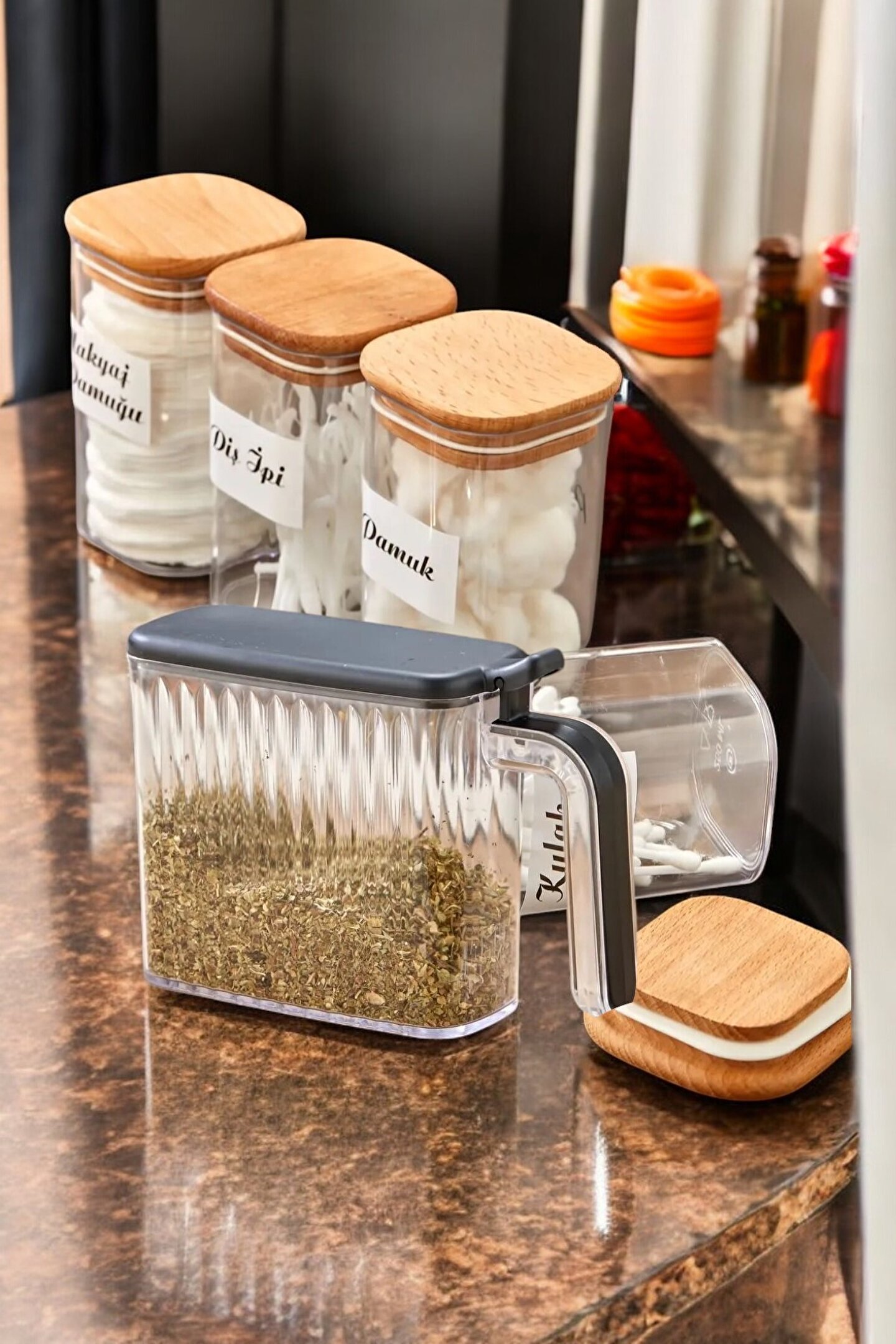 Banyonuzda kişisel bakım ürünlerinizi düzenli bir şekilde saklayabileceğiniz bu set, 4 adet özel alanı ile pamuk ve kulak temizleme çubuklarını barındırır. Estetik ve pratik bir tasarıma sahip olan bu banyo seti, günlük hijyen ihtiyaçlarınızı karşılamak için mükemmeldir. Şık görünümüyle banyo dekorasyonunuza da uyum sağlar.