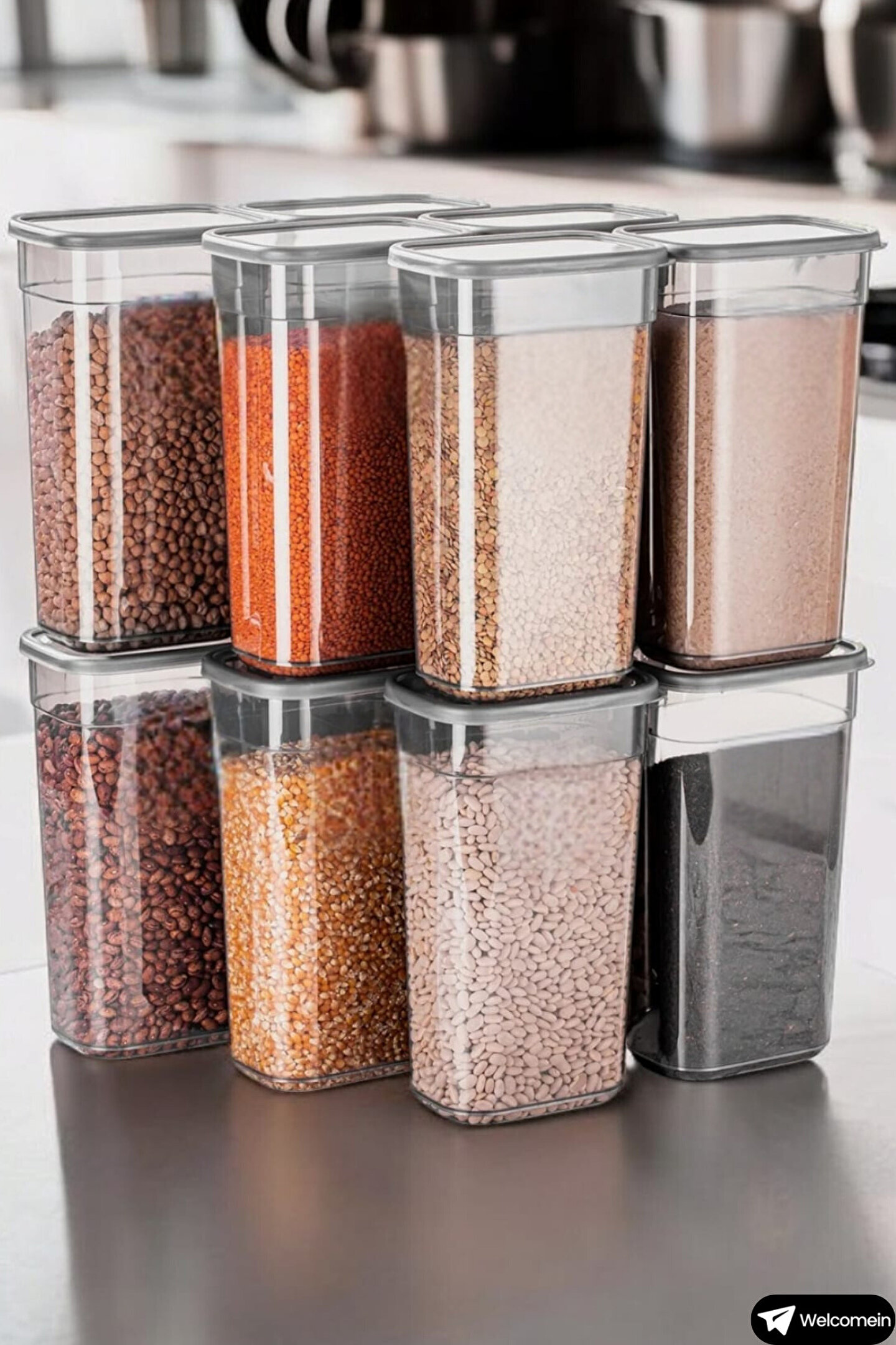 - You can safely preserve your groceries and spices with their airtight tight lids.
