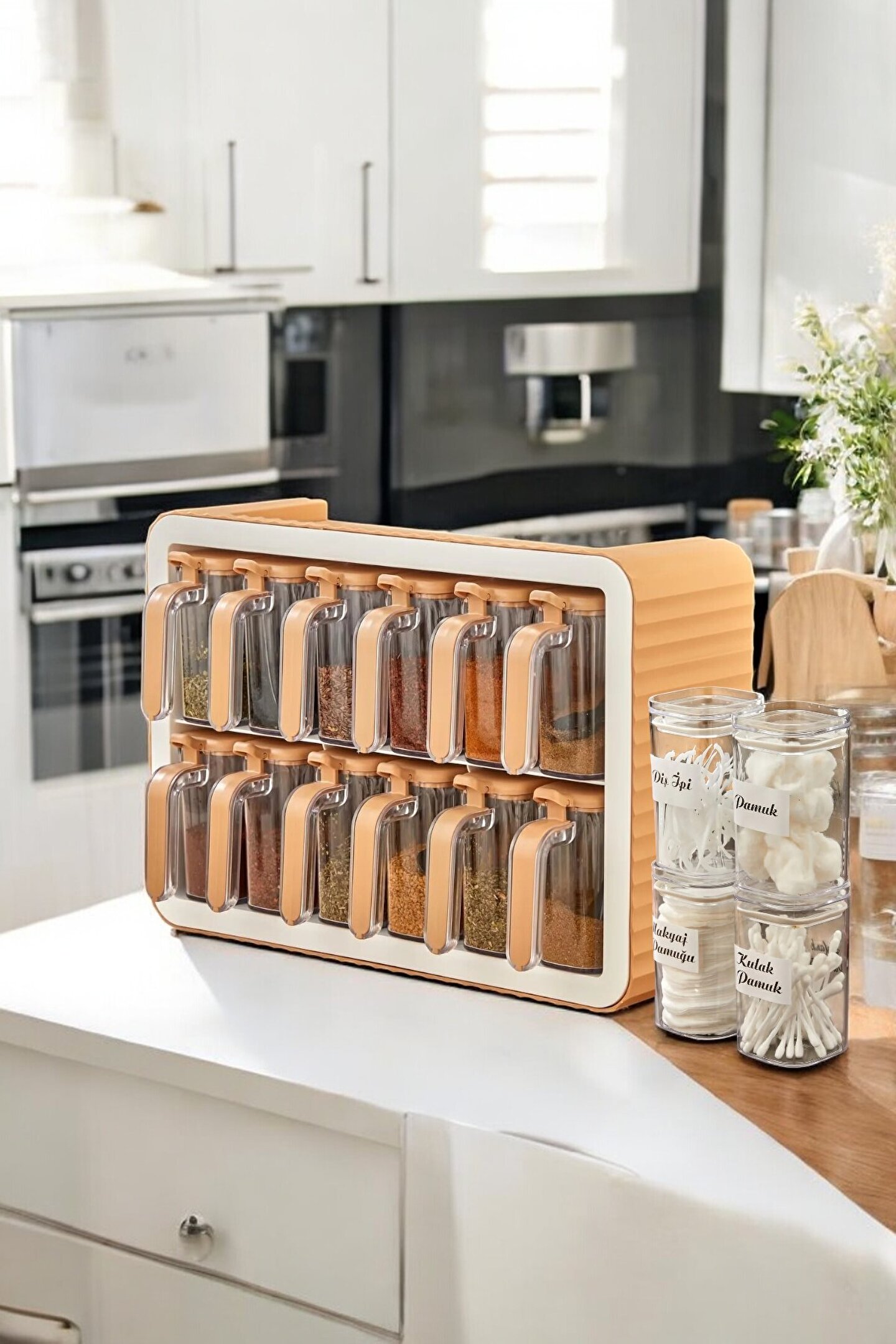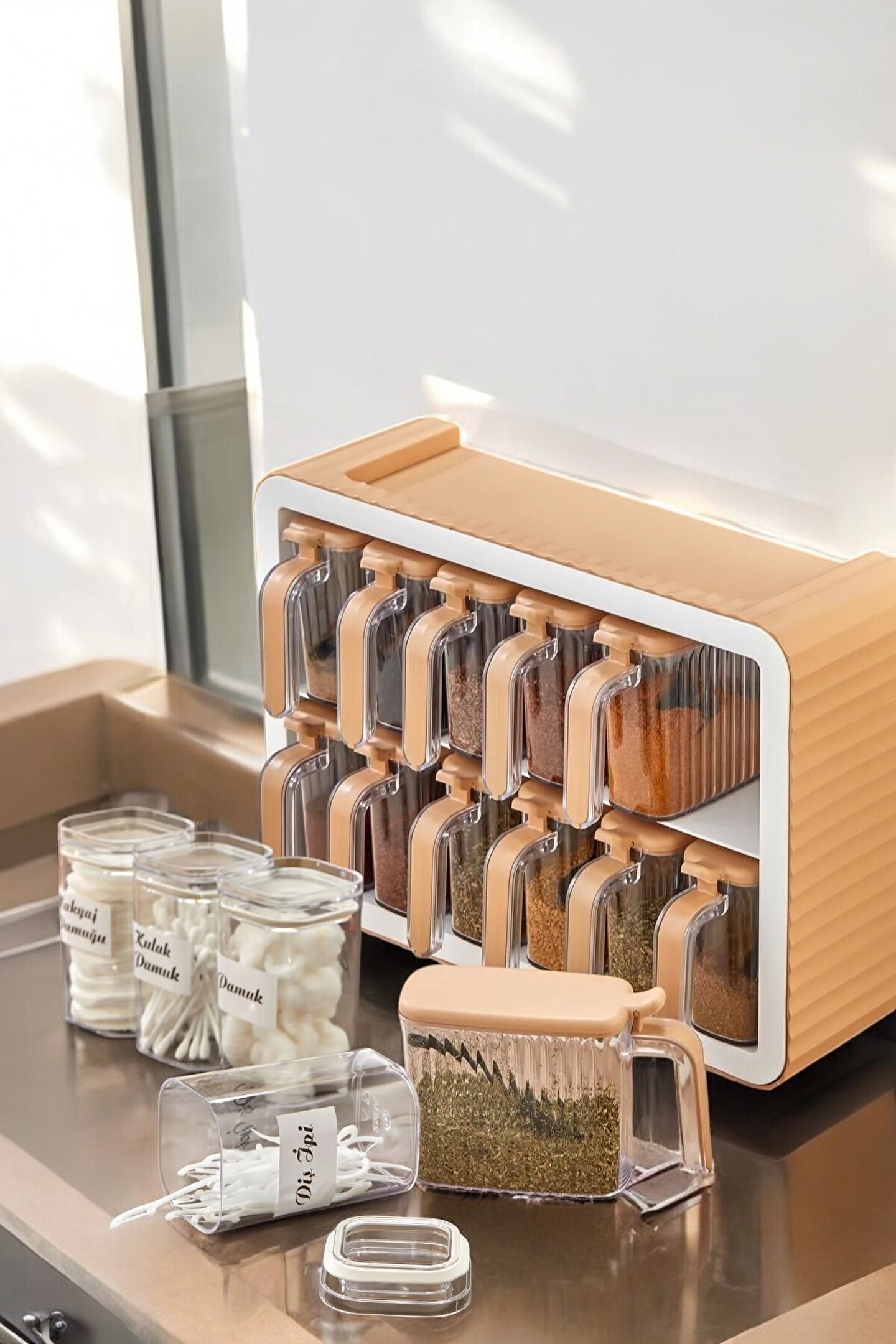 Mutfak tezgahınıza modern bir dokunuş ekleyen 12'li baharat standı, tüm baharatlarınızı düzenli bir şekilde saklamak için ideal. Her bir şişenin kolayca açılabilen kapakları, baharatlarınızın taze kalmasını sağlar. Fonksiyonel tasarımı sayesinde, yemek yaparken gerekli olan baharatlara hızlıca ulaşabilirsiniz. Şık görünümüyle mutfak dekorunuza da katkıda bulunur.