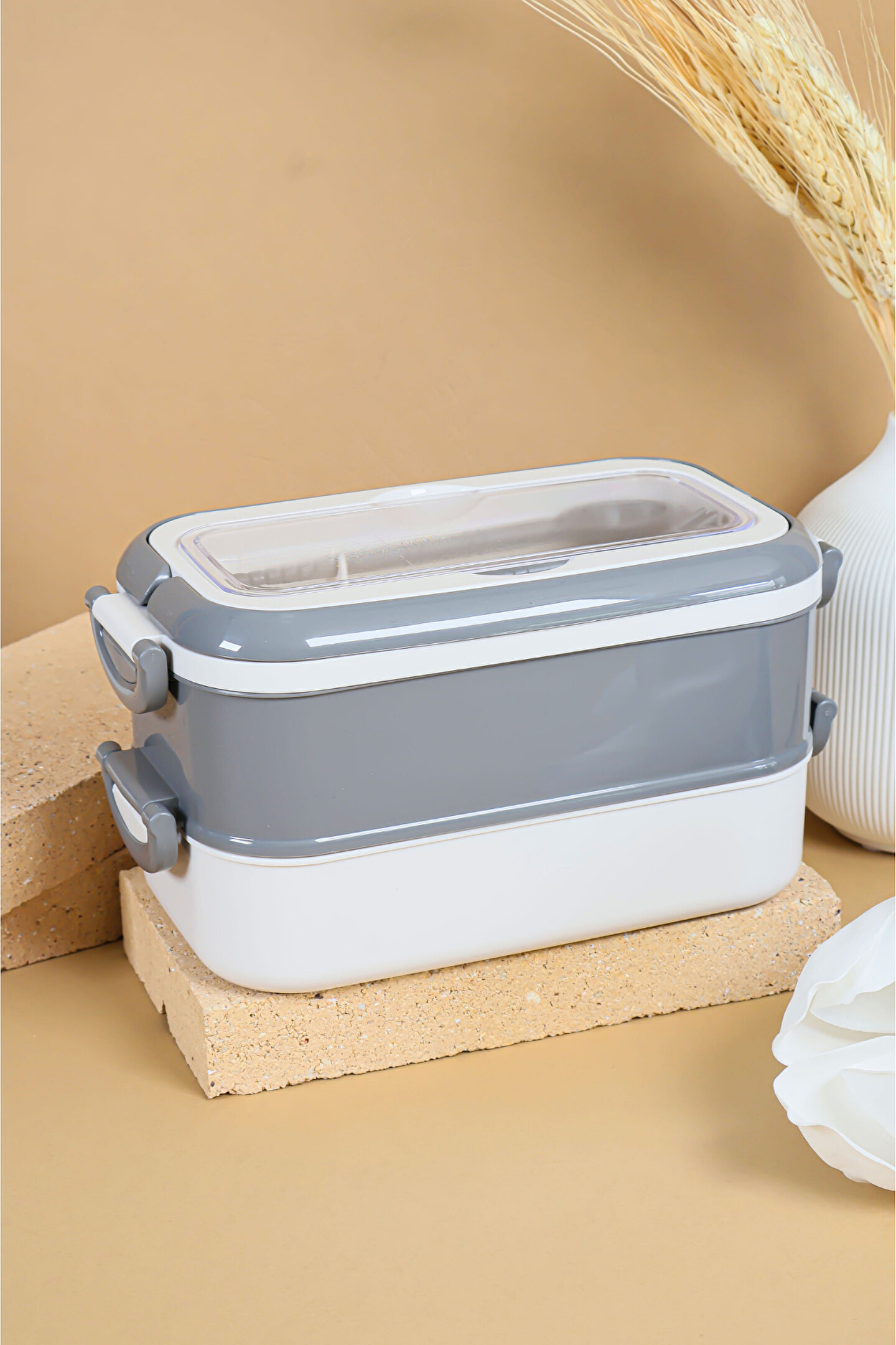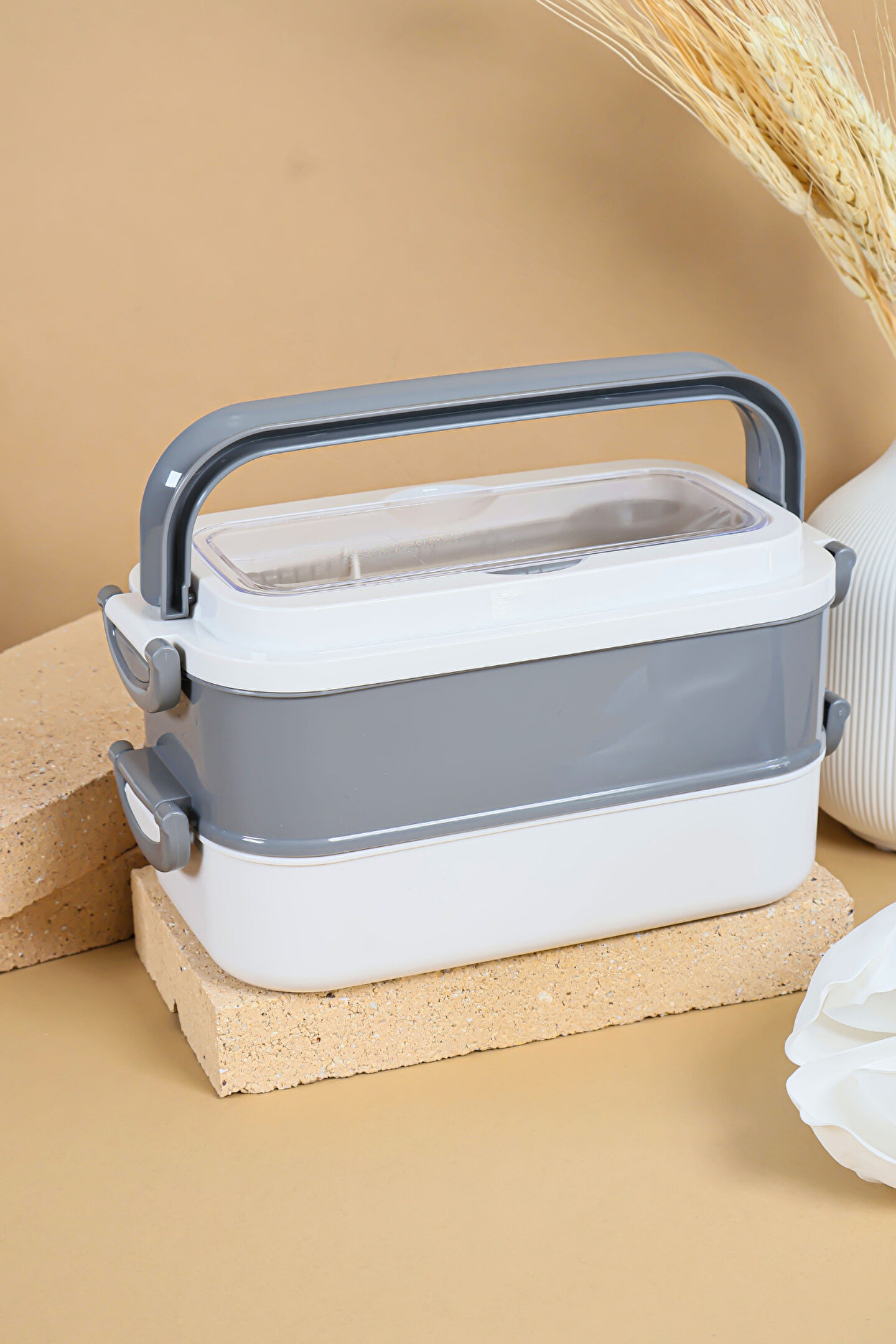 welcomein 2 Katlı Sızdırmaz Taşıma Saplı Saklama Beslenme Kabı - Mikrodalgaya Uygun Öğle Yemeği Kabı