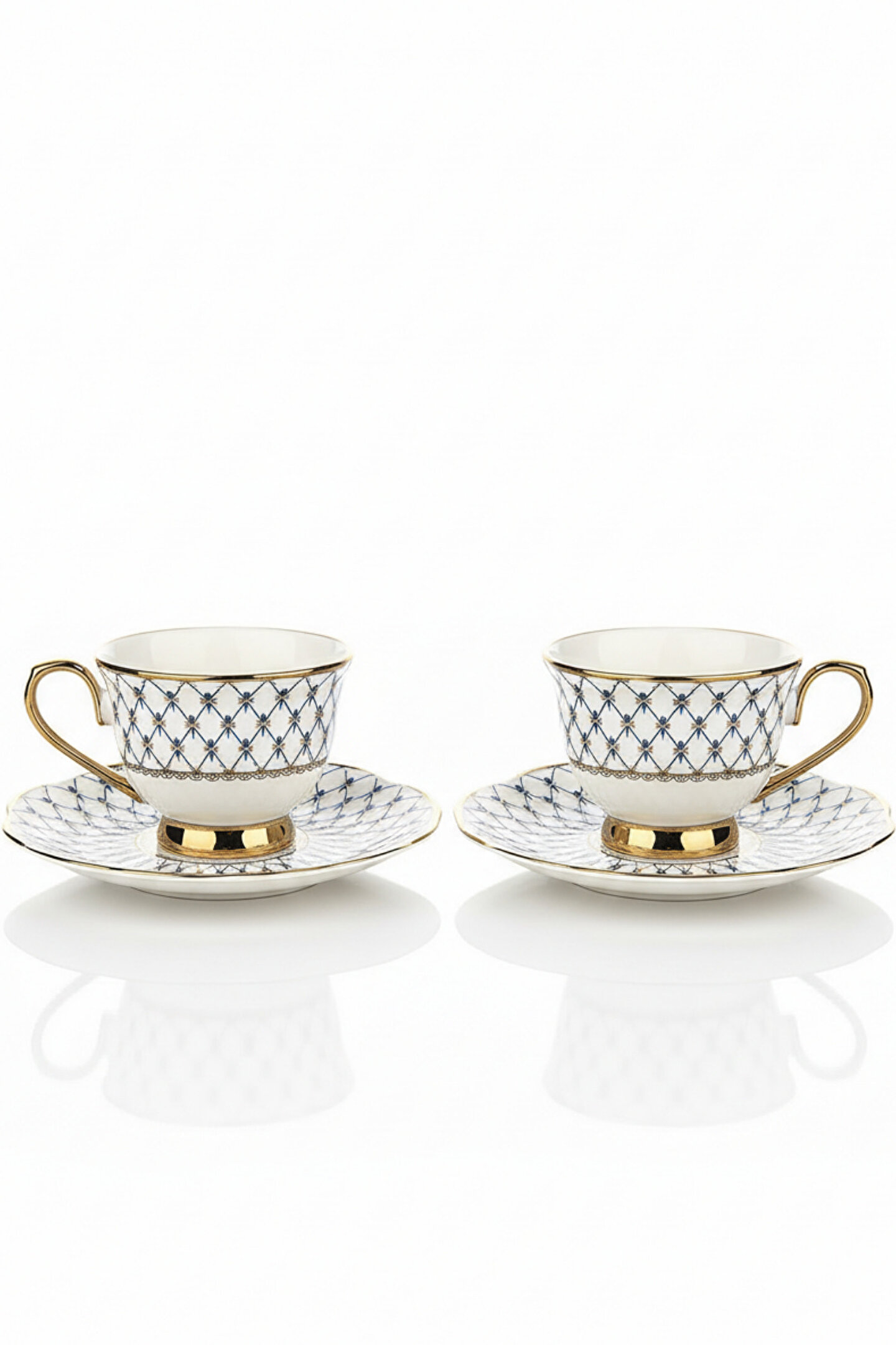 Zarafet ve şıklığı aynı anda sunan bu 2’li porselen kahve fincan seti, hem günlük kullanım hem de özel misafirler için mükemmel bir tercih. Altın detaylı modern dokusu ve ince işçiliğiyle kahve keyfinizi daha özel hale getirir.