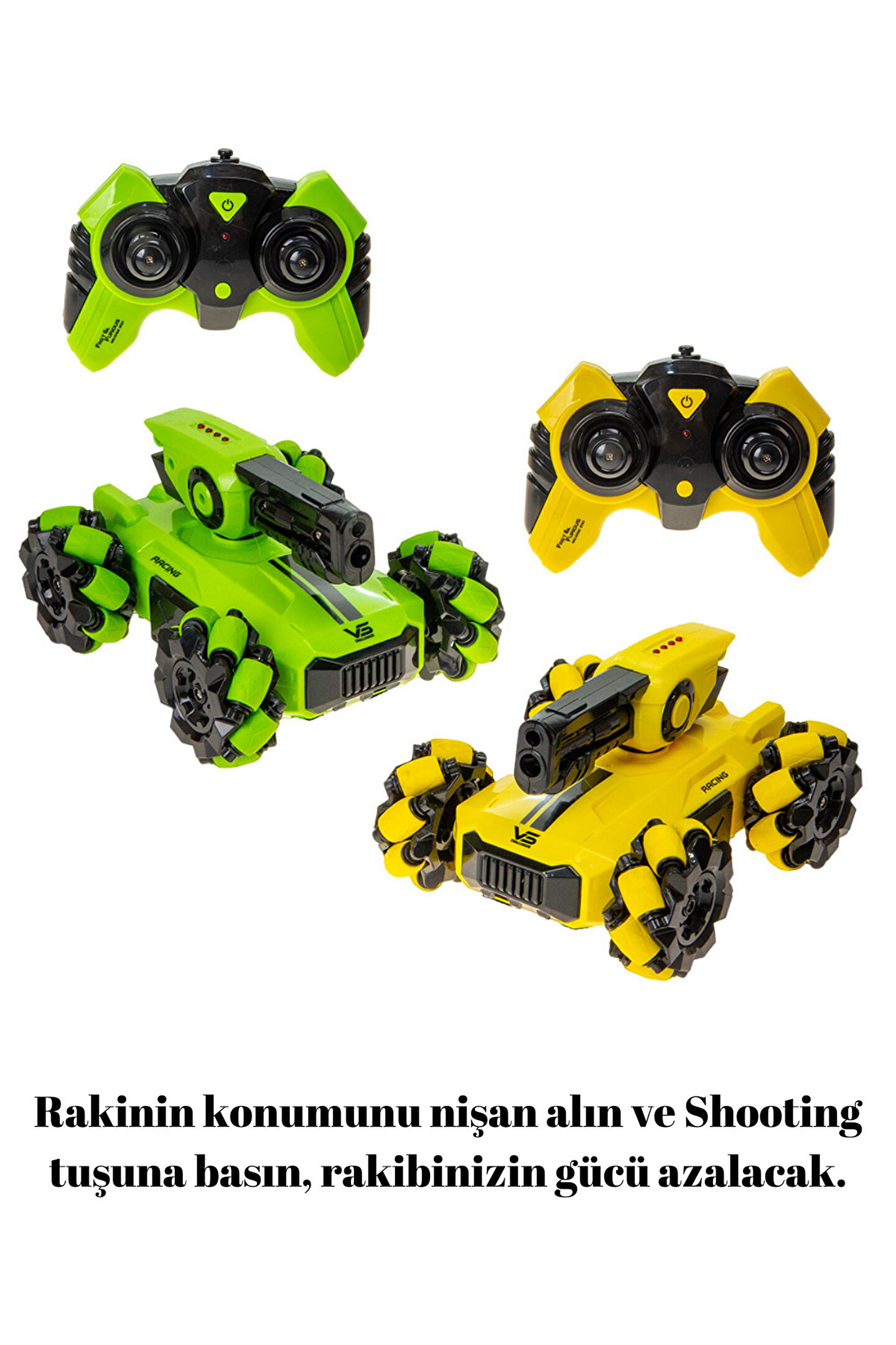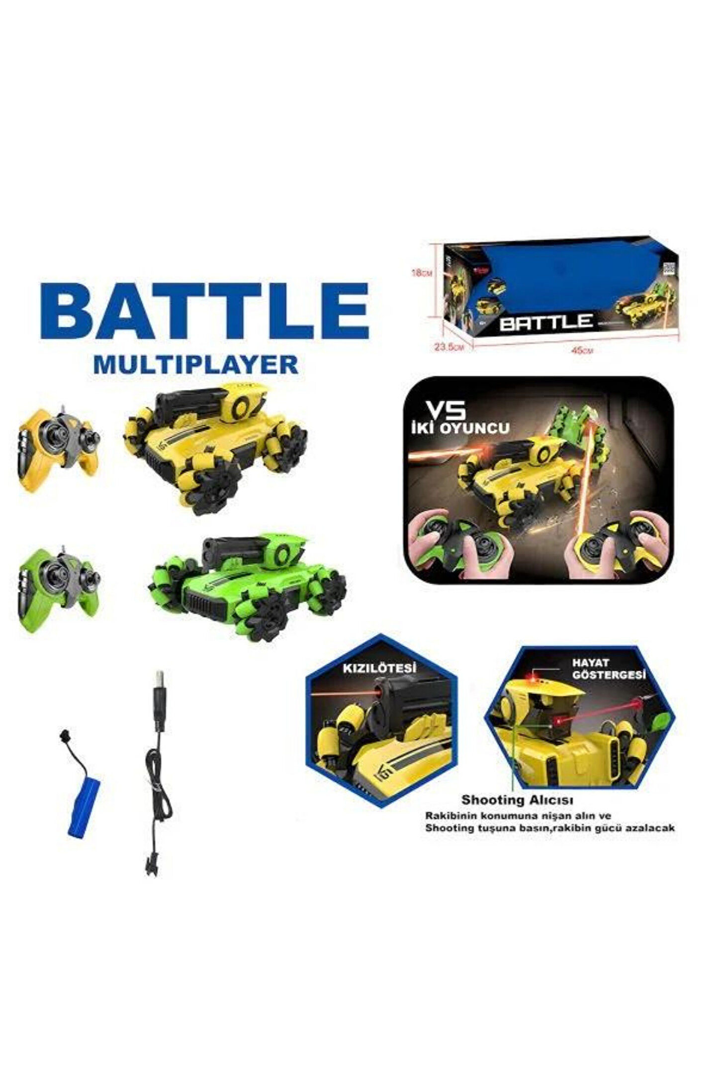 Multiplayer Modu: Arkadaşlarınızla kardeşlerinizle veya ebeveynlerinizle heyecan dolu savaş oyunlarına katılın! Multiplayer modu sayesinde aynı anda birden fazla aracı kontrol etme imkanı sunar. ; ; Uzaktan Kumandalı Full Fonksiyon: 2.4 GHz frekansta çalışan uzaktan kumanda, arabayı tam kontrol etmenizi sağlar. İleri, geri, sağa dönme, sola dönme ve hatta akrobatik hareketler ile aracınızı yönlendirin. ; ; Şarj Edilebilir ve Dayanıklı: Şarj edilebilir bataryası sayesinde kesintisiz ve uzun süreli oyun keyfi sunar. Ayrıca, dayanıklı malzemelerden üretilmiş olup çarpışmalara ve düşmelere karşı dayanıklıdır. ; ; ; ; Akrobatik Hareketler: Aracınızın çeşitli akrobatik hareketlerle sürükleyici ve göz alıcı performanslar sergilemesini sağlayın. 360 derece dönme, tepetaklak gitme ve daha fazlası! ; ; ; LED Işıklar ve Ses Efektleri: Gece ve gündüz oyun keyfini artırmak için araç, LED ışıklar ve gerçekçi ses efektleri ile donatılmıştır. ; ; ; Eğlenceli ve Rekabetçi: Bu araba, çocukların ve yetişkinlerin rekabetçi ruhunu ortaya çıkararak eğlenceli yarış ve savaş oyunlarına olanak tanır. ; ; ; Hızlı Şarj ve Uzun Oyun Süresi: Hızlı şarj özelliği, çocukların beklemeksizin oyunlarına devam etmelerini sağlar. Uzun oyun süresi ile kesintisiz eğlence! ;