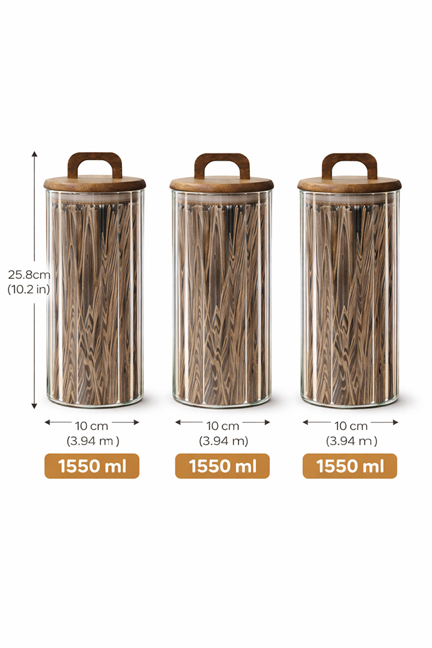 %100 cam gövdesi ve doğal ahşap kapağı sayesinde gıdalarınızı güvenle saklamanıza yardımcı olur.