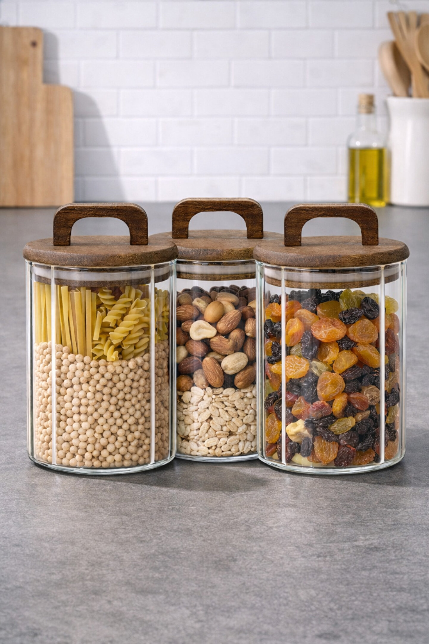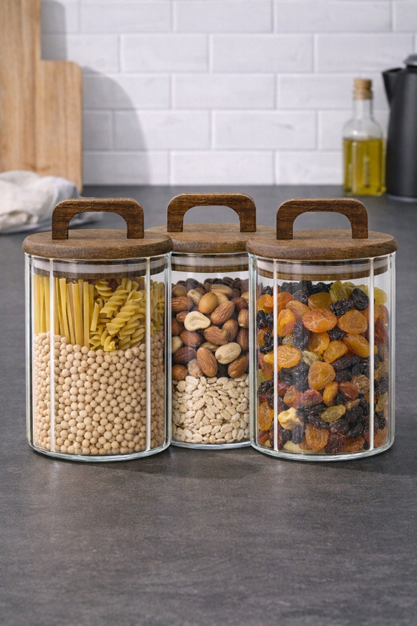 Welcomein 3’lü Cam Kavanoz Seti, mutfağınızda hem düzen hem de estetik arayanlar için özel olarak tasarlanmıştır.