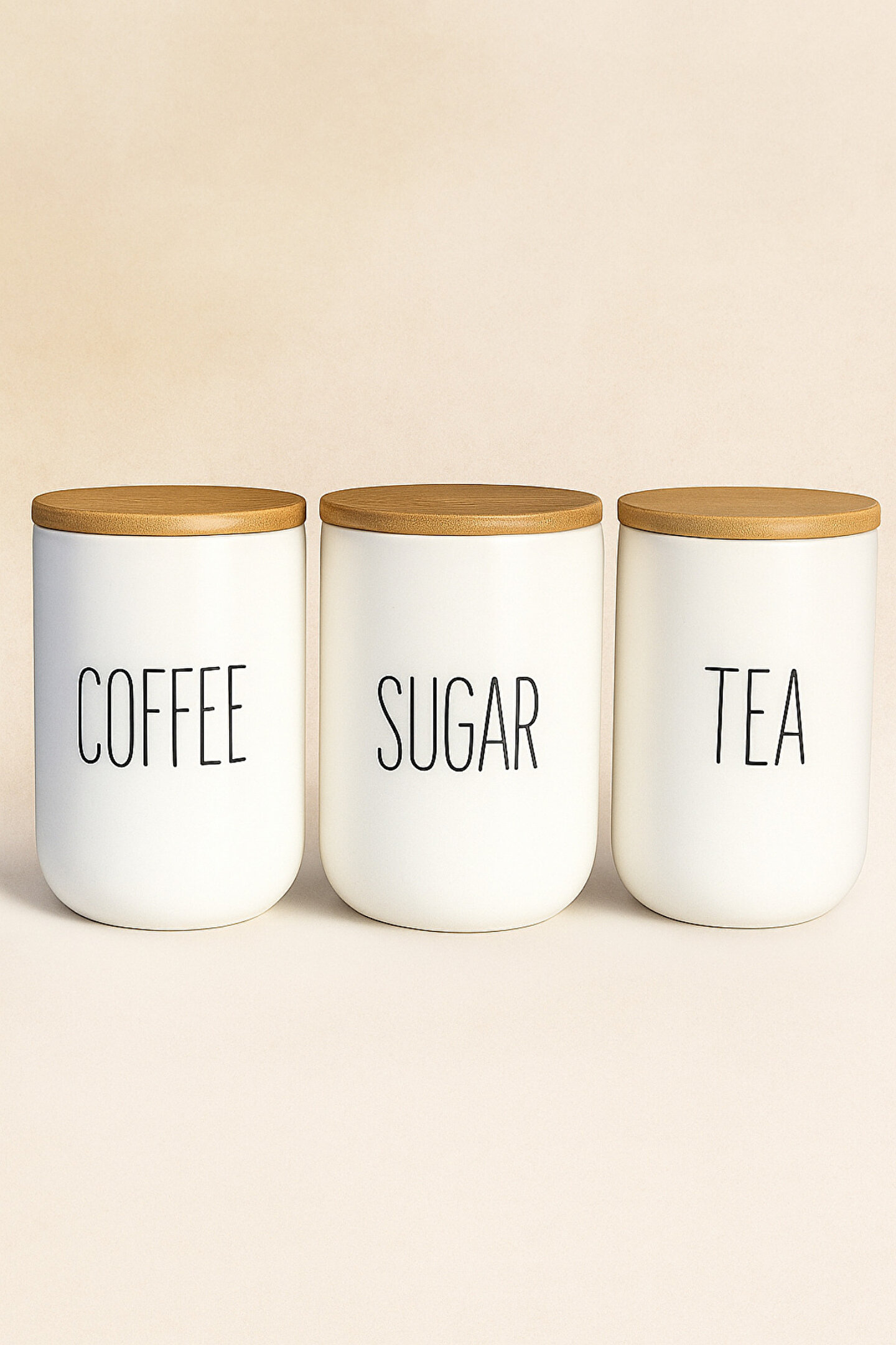 Set İçeriği:3 adet kavanoz (Coffee, Sugar, Tea)