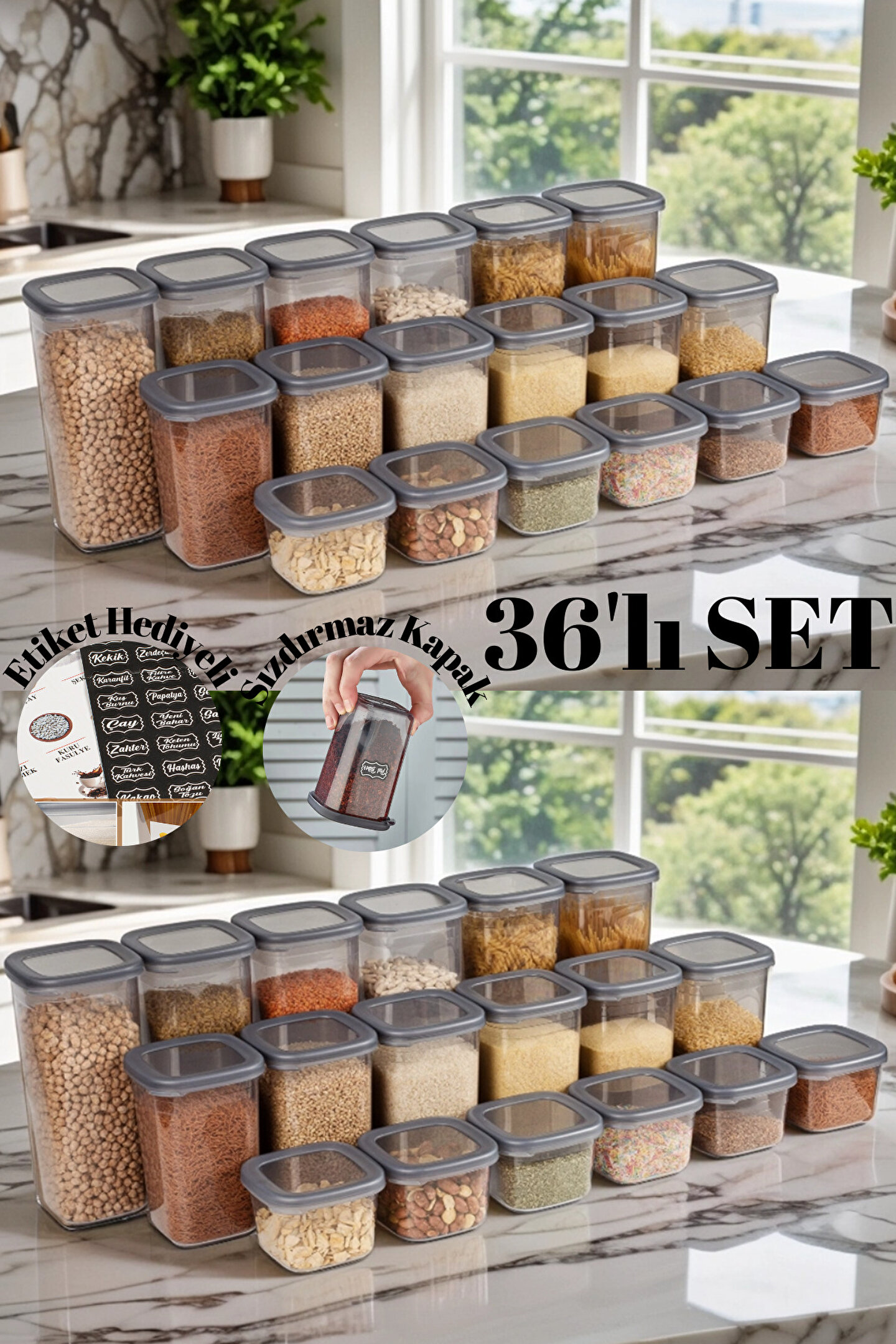 welcomein 36 Adet 72 Parça 0,55-1,2-1,7 Litre Kare Erzak Bakliyat Saklama Kabı Seti 60 Etiket Hediyeli