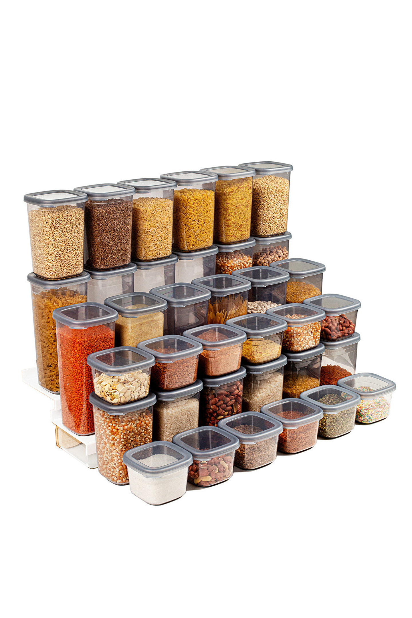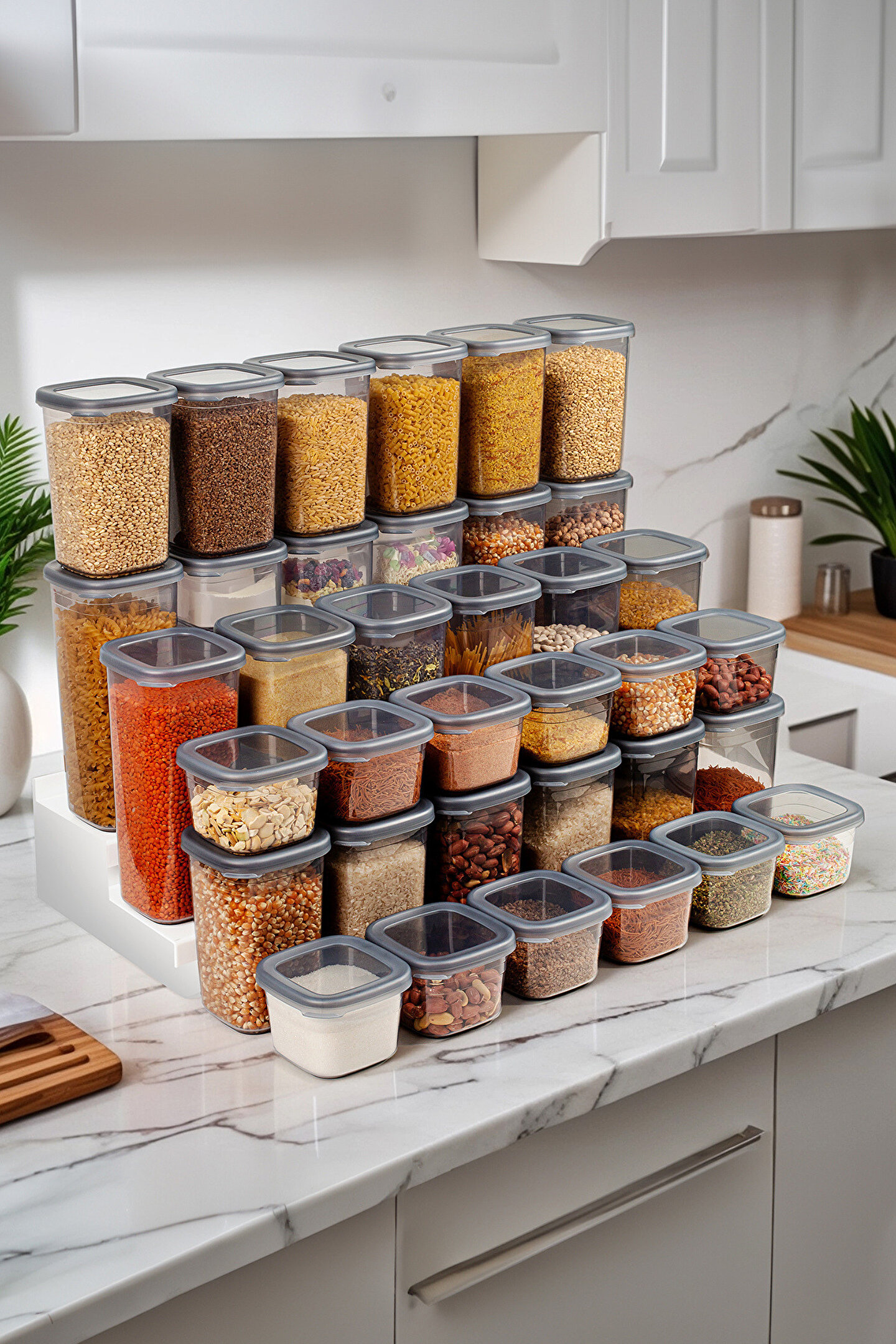 36 Adet 72 Parça 550 ml. 1200 ml. 1750 ml. Sızdırmaz Kapaklı Kare Erzak Bakliyat Saklama Kabı Seti