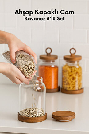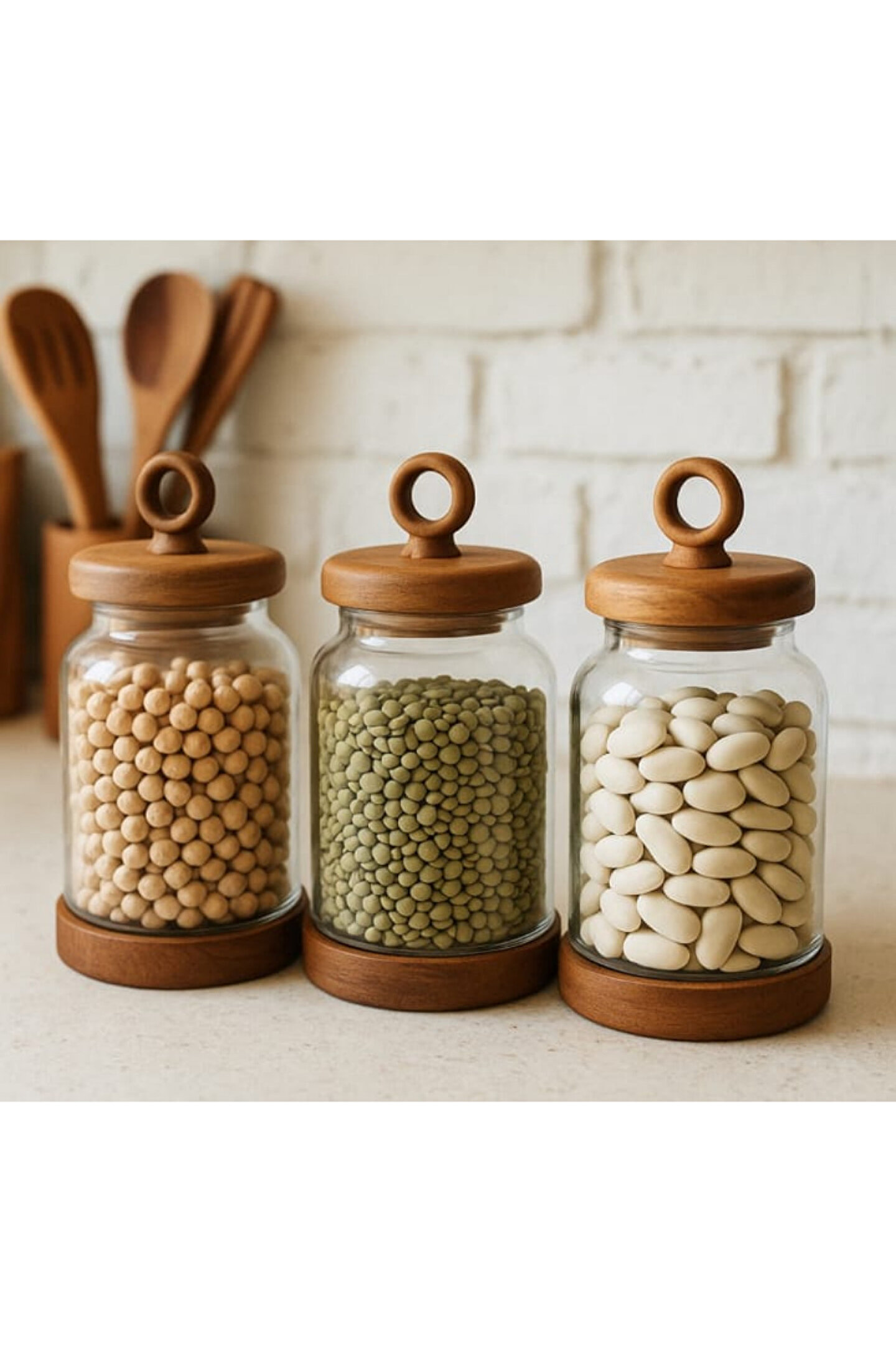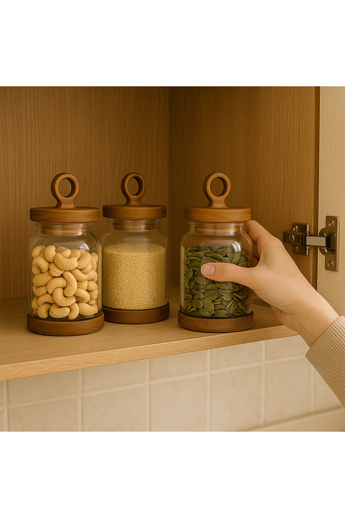 Mutfağınızda hem estetik hem de düzen arıyorsanız, Mien markasının BOR-011 model ahşap kapaklı cam kavanoz seti tam size göre!