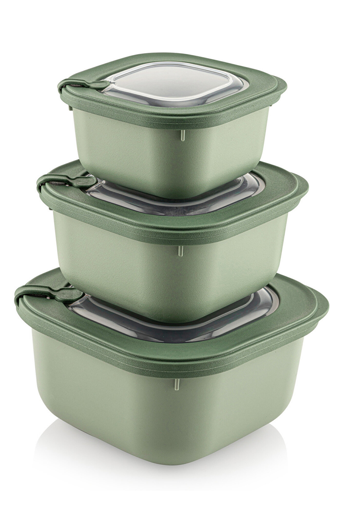 • 3lü Mikrodalga ve Difrize Uygun Vip Kapaklı Özel Saklama Kabı Seti Yeşil