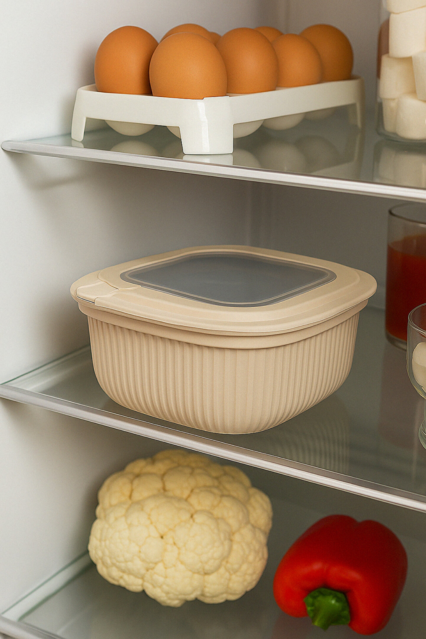 Mutfakta hem düzen hem de şıklık arayanlar için tasarlanmış bu antrasit renkli, modern tasarımlı saklama kabı, günlük kullanım için mükemmel bir yardımcıdır. Mikrodalgada ısıtılabilir, buzdolabında güvenle saklanabilir ve gıdalarınızı taze tutar.