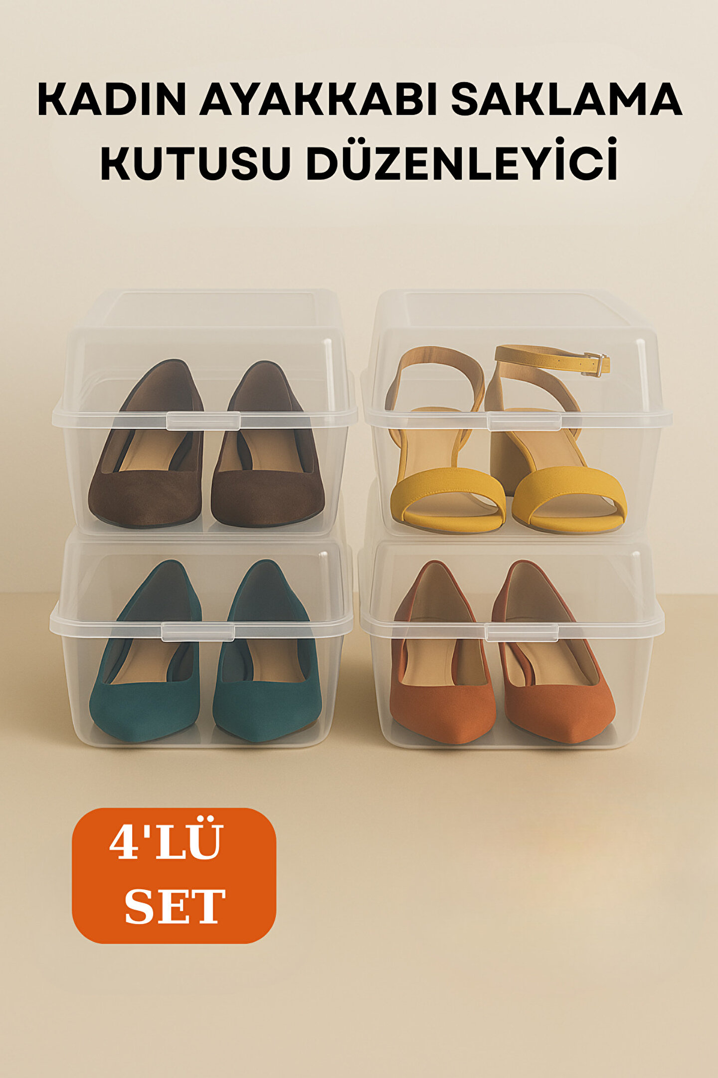 welcomein 4lü Kadın Ayakkabı Koruma Kutusu Şeffaf Ayakkabı Saklama Kutusu Kadın Ayakkabı Düzenleyici