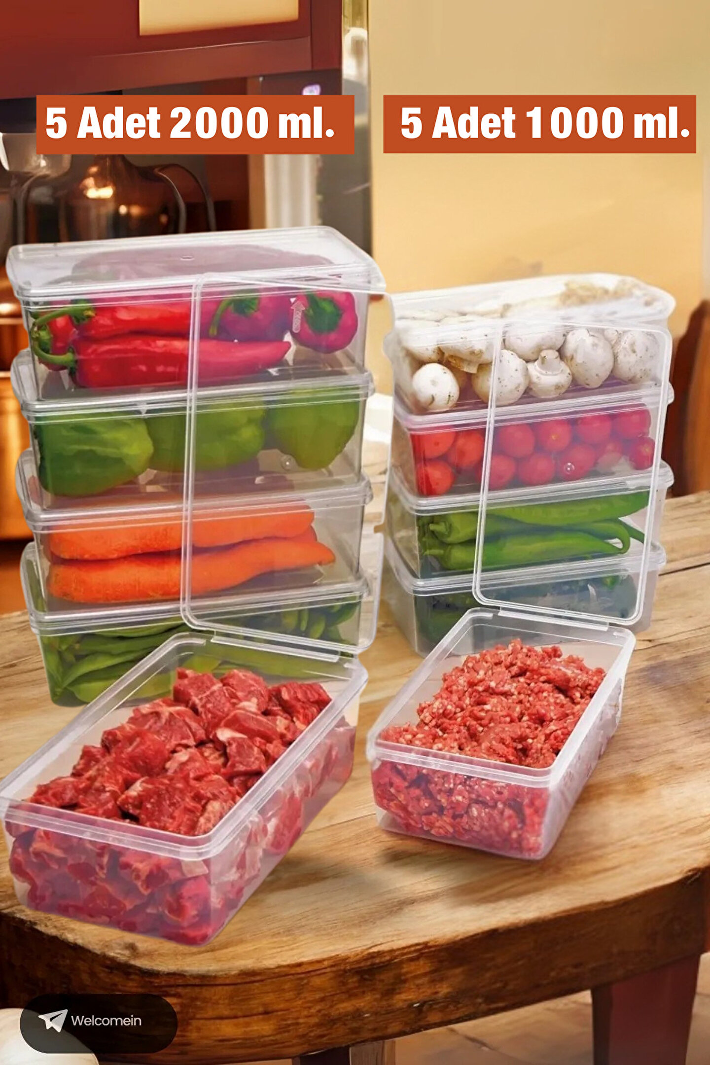 welcomein 5 Adet 2 Lt. 5 Adet 1 Lt. Kendinden Kapaklı Derin Dondurucuya Uygun Buzluk Saklama Kabı Düzenleyici