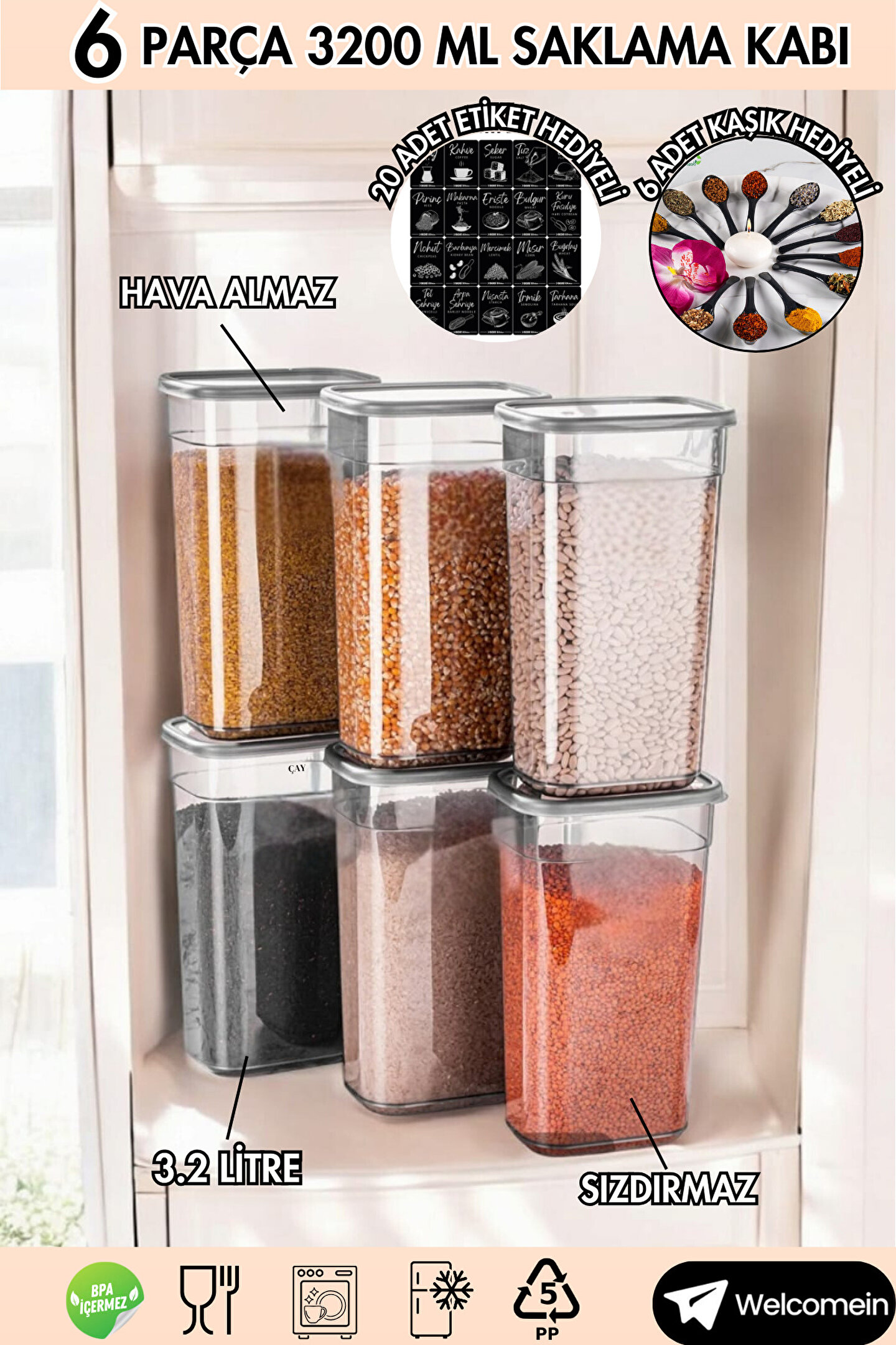 - Hava almaz sıkı kapakları ile erzak ve baharatlarınızı güvenle muhafaza edebilirsiniz.