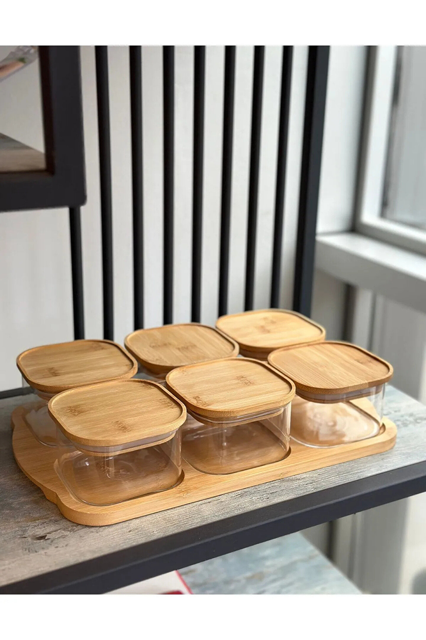 Ürün Adı:6'lı 300 ml Bambu Kapaklı Cam Kahvaltılık