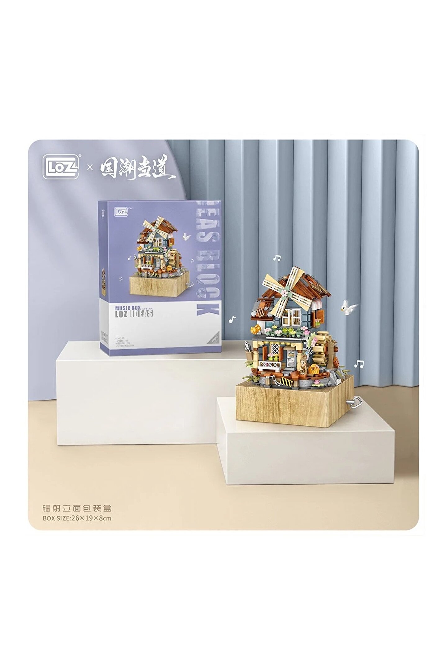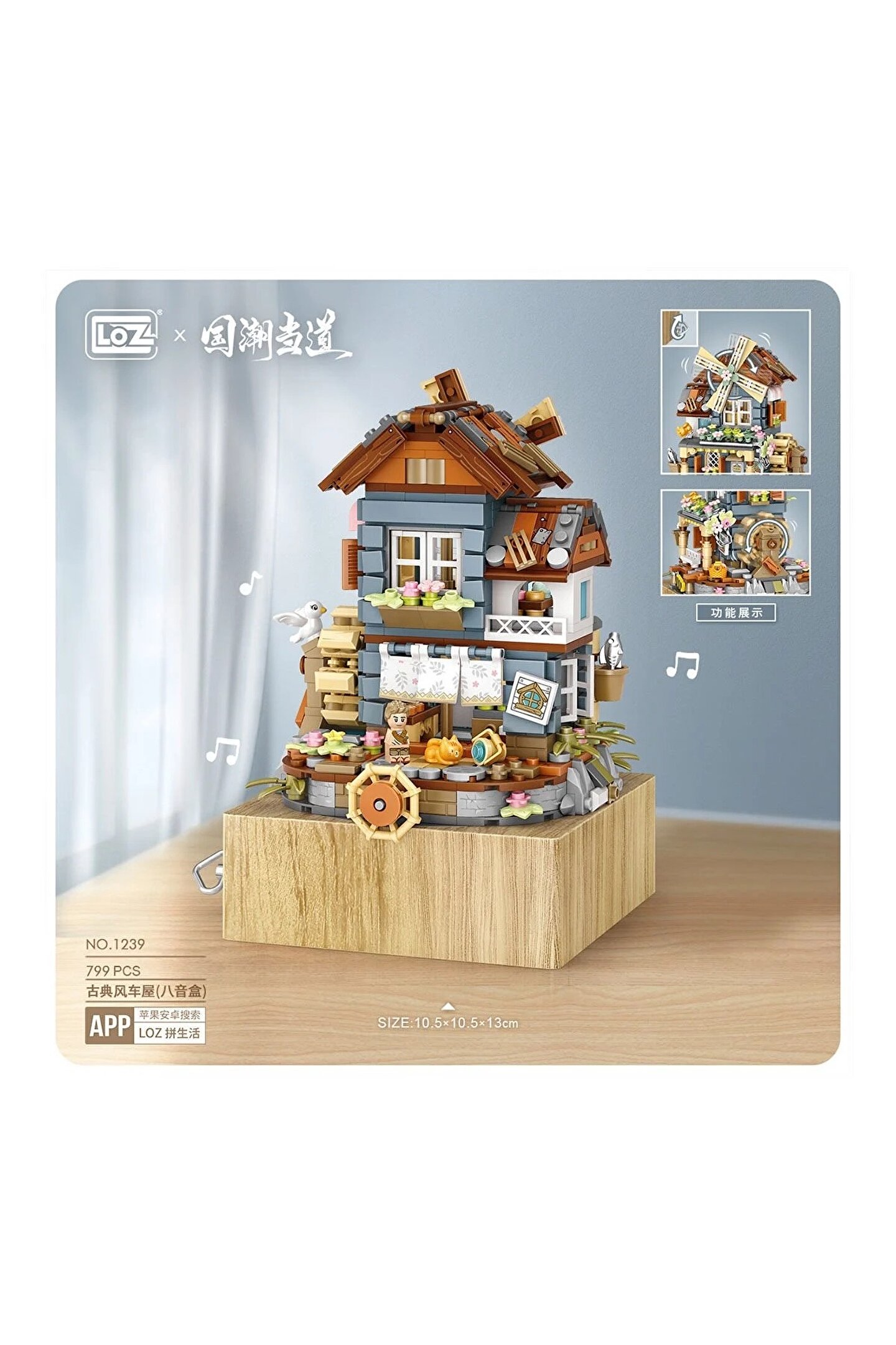 welcomein 799 Parça LOZ Blok Oyuncak Mini Değirmen Müzik Kutusu Yapı Tuğlaları Seti
