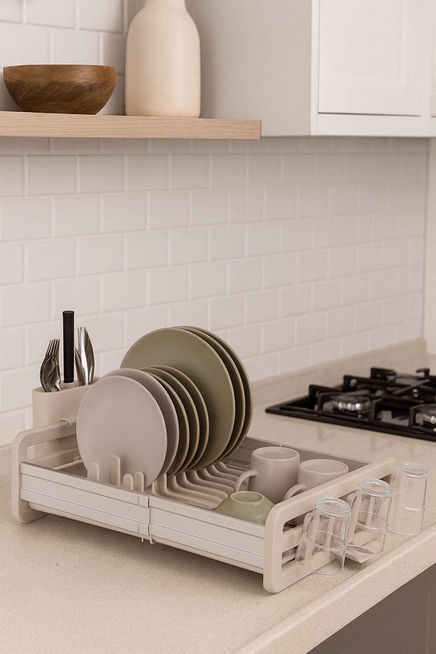 Açılır Kapanır Bulaşıklık Kurutmalık Su Tahliye Tepsili Çatal-Bıçak Bölmeli Tabak Organizeri