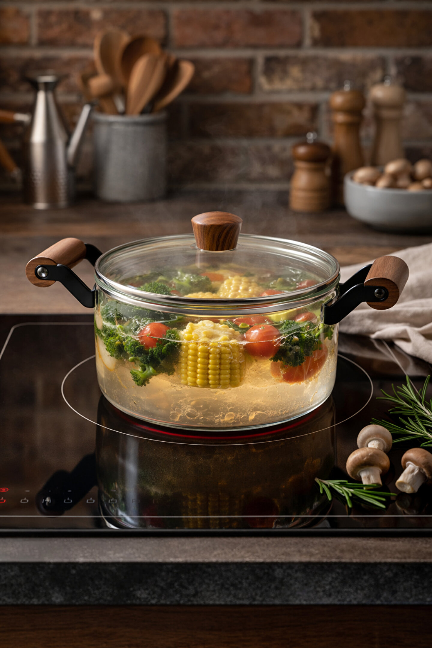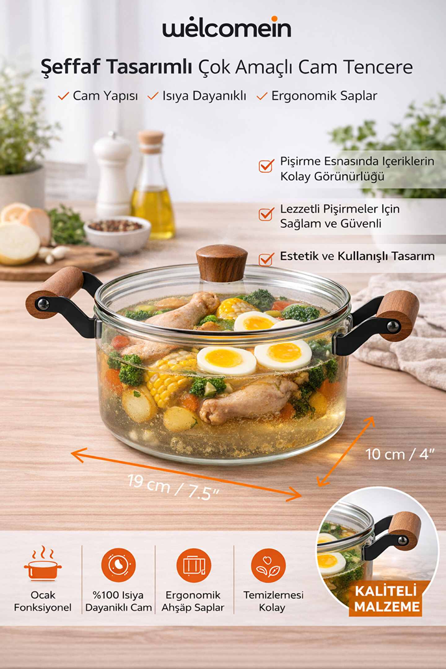 Akasya Kapaklı Cam Tencere, mutfağınızda hem estetik hem de fonksiyonel bir kullanım sunar. Şeffaf cam yapısı sayesinde pişirme sürecini kolayca takip edebilir, yemeklerinizin lezzetini ve besin değerini koruyabilirsiniz.