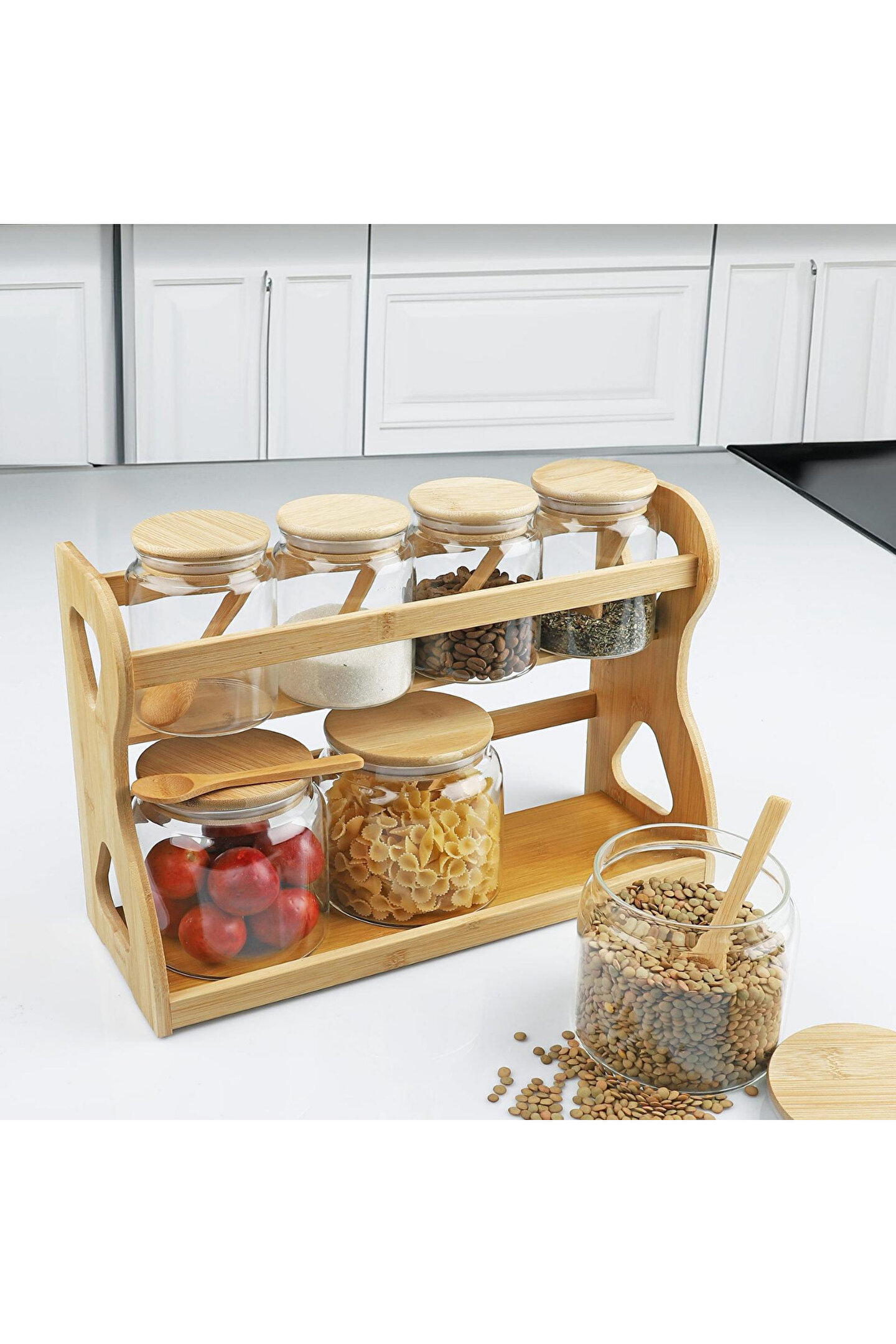 Dayanıklı Bambu Stand: Tüm kavanozlarınızı düzenli ve erişilebilir şekilde saklar