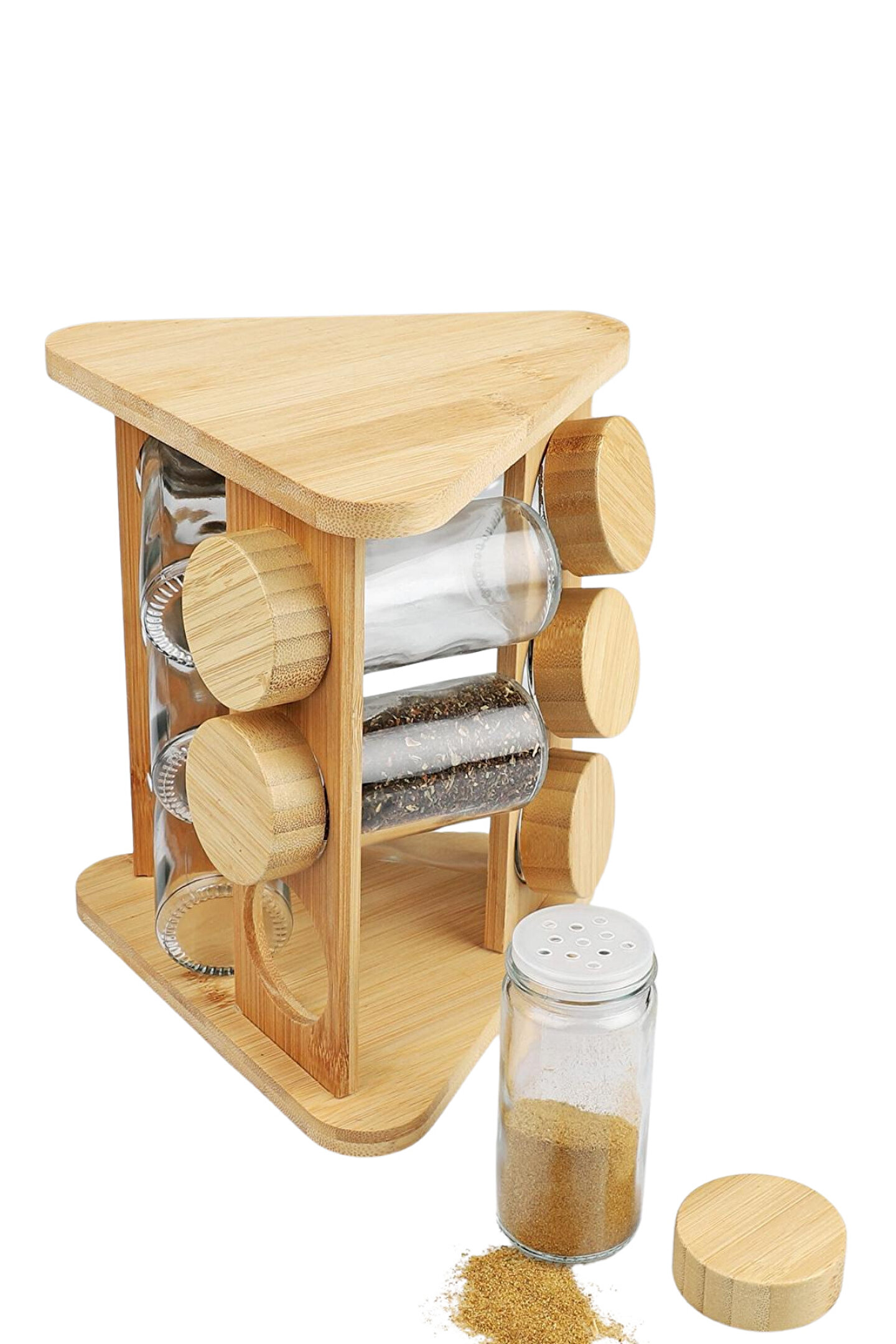 Mutfaklarınıza hem düzen hem de şıklık katacak Bambulu Döner Standlı 12’li Cam Baharatlık Seti, pratik kullanımı ve estetik tasarımıyla mutfaklarda vazgeçilmez olacak.