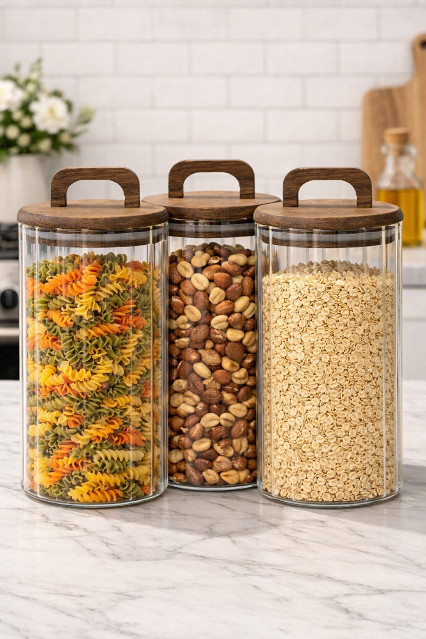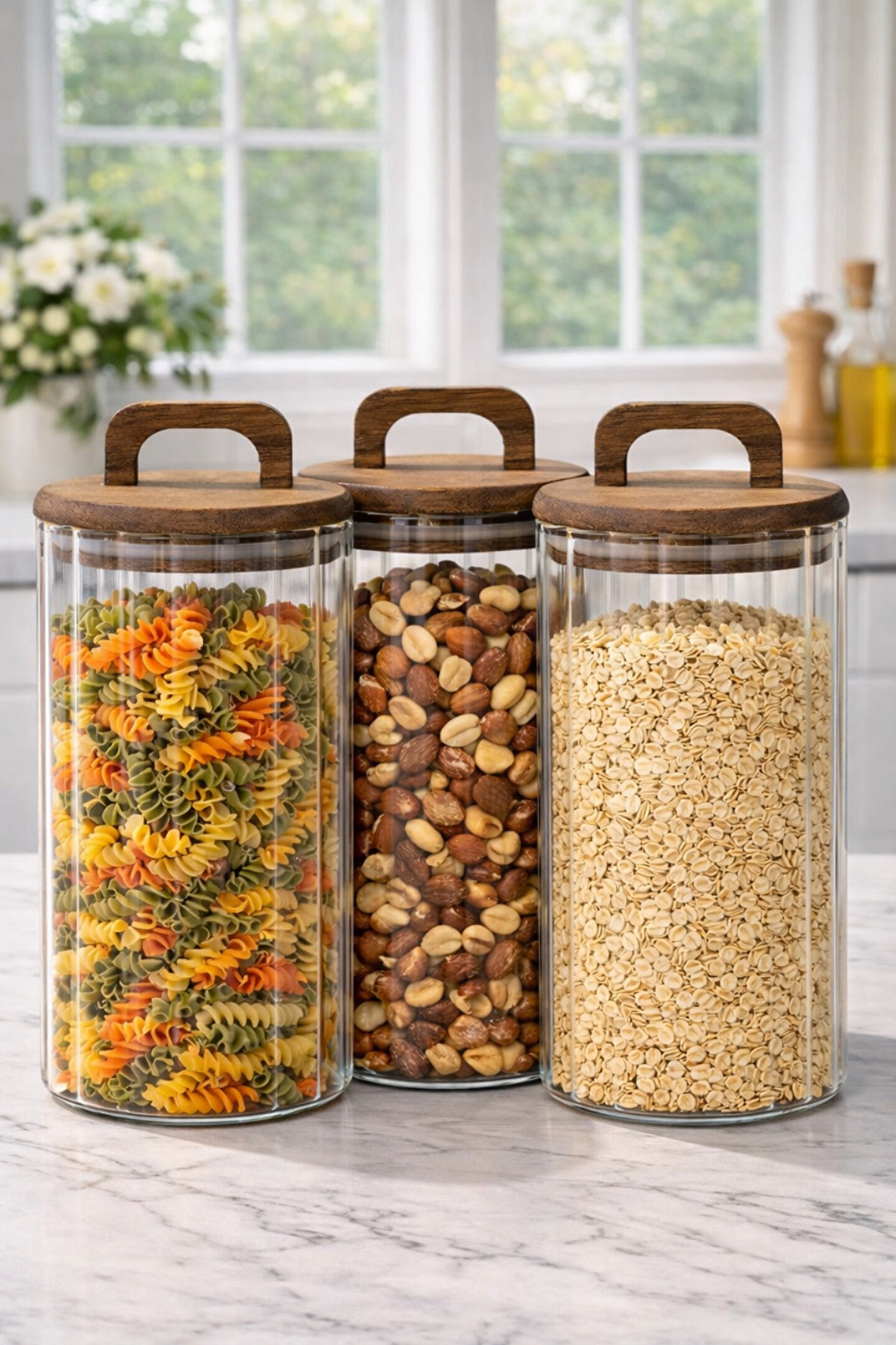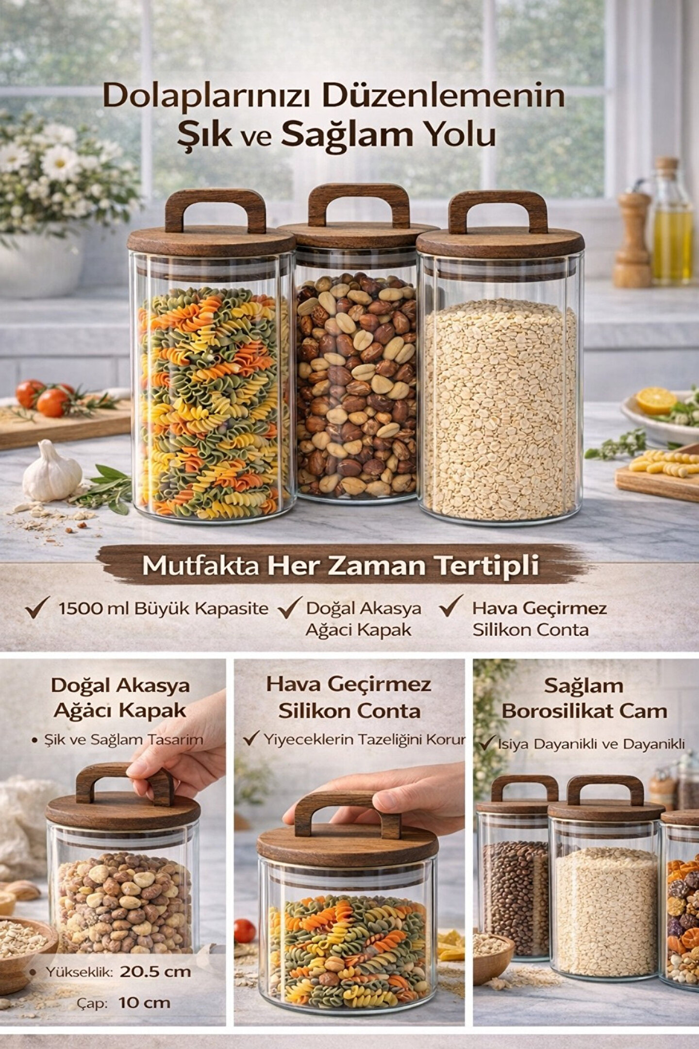 Mutfağınıza hem şıklık hem düzen katacak cam saklama kavanozu seti ile gıdalarınızı uzun süre taze saklayın.