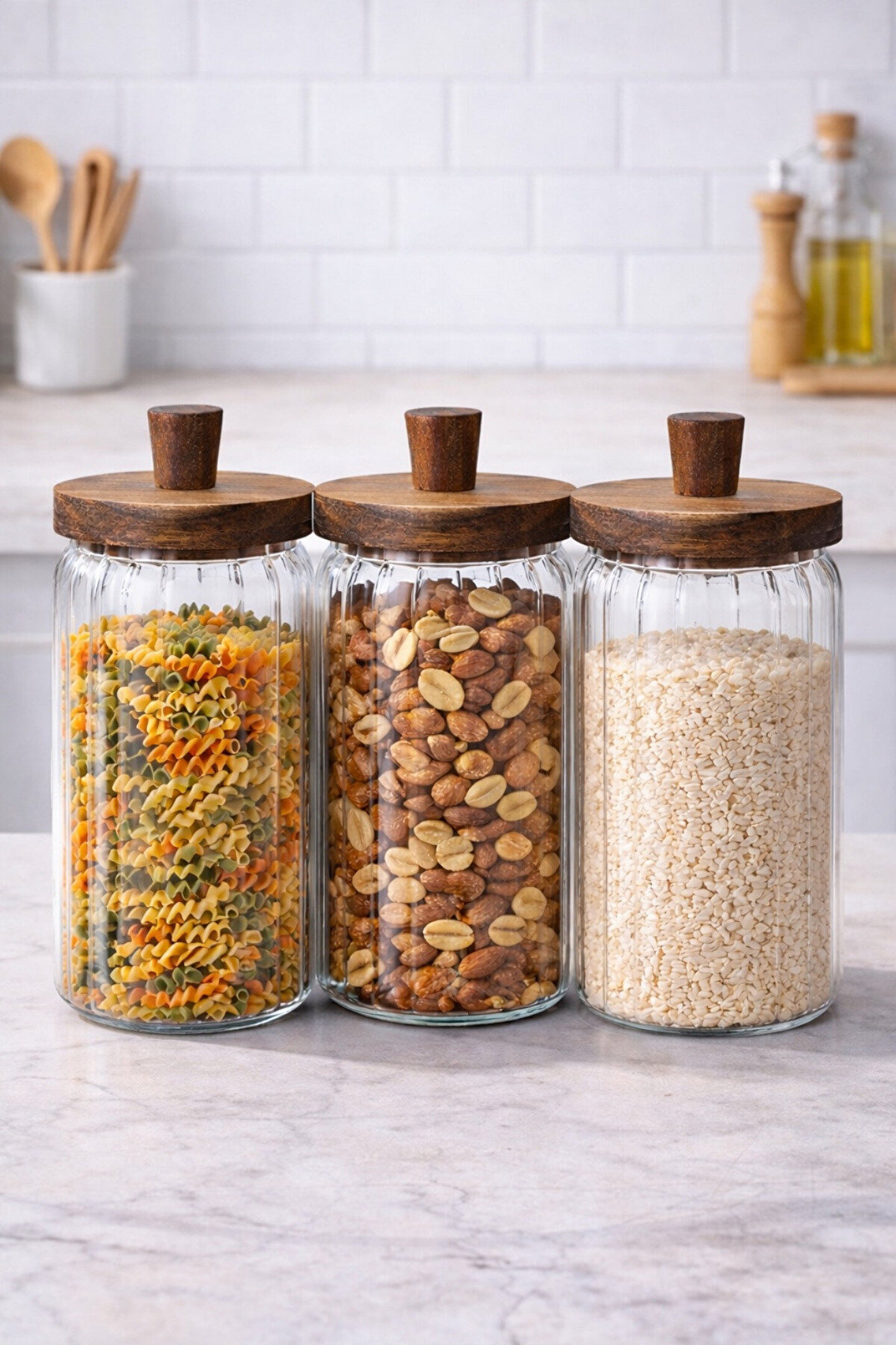 Cam Saklama Kavanozu Seti 3’lü – Akasya Kapaklı, Hava Geçirmez, 700 ml Erzak Saklama
