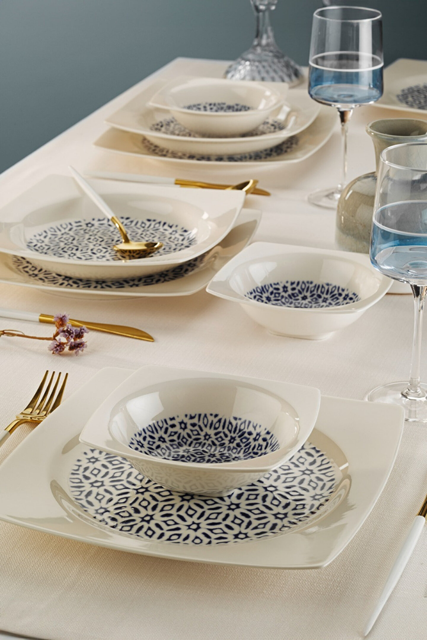 Üstün kaliteli porselen malzeme, dayanıklılığı ve zarif görünümüyle sofralarınızda uzun yıllar boyunca kullanılabilir. Şıklığıyla öne çıkan bu takım, özellikle özel günlerde ve davetlerde kullanıma uygundur. Modern ve klasik çizgilerin birleşimiyle her türlü sofra düzenine uyum sağlar.