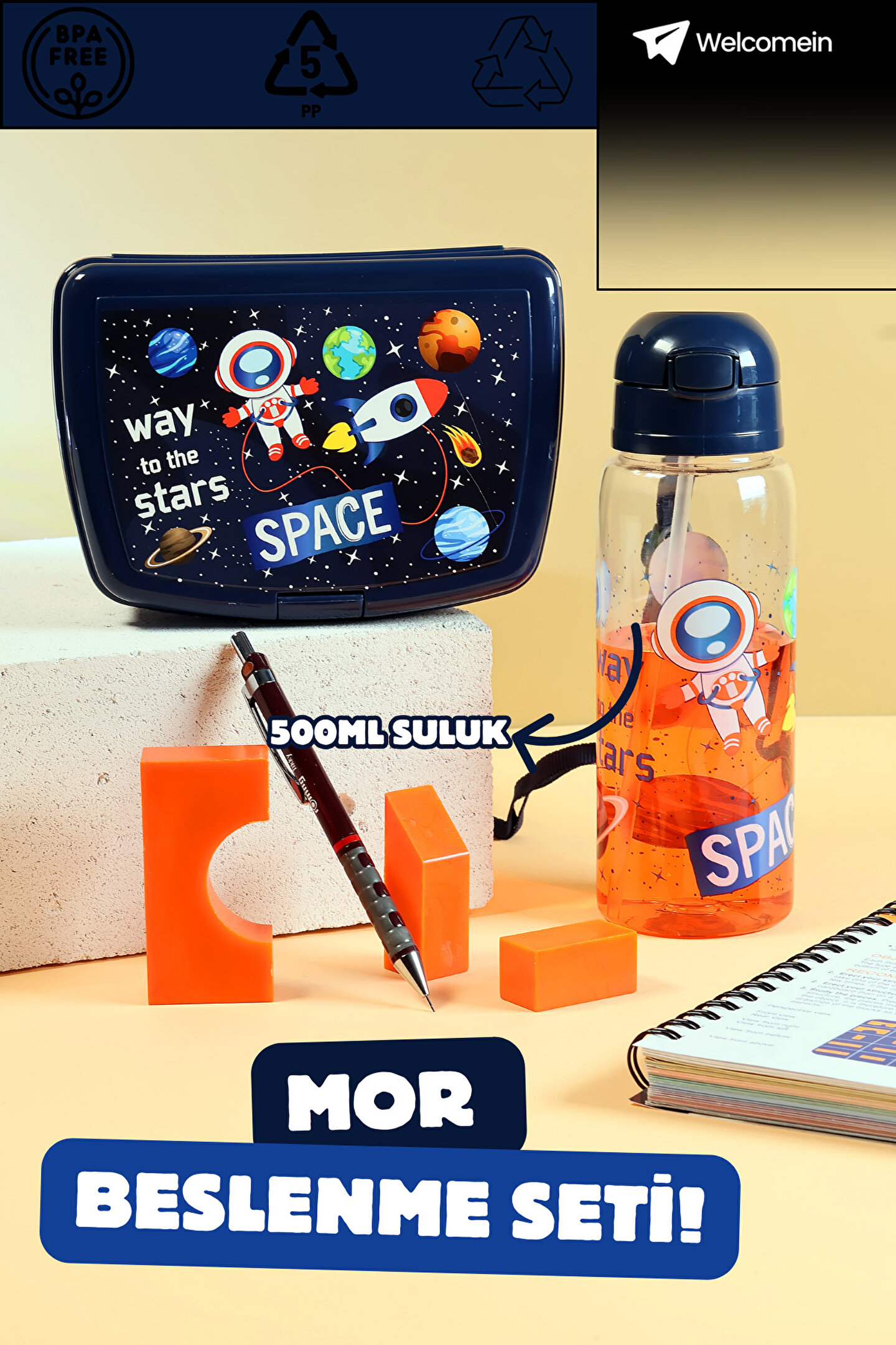 Bu çocuk beslenme seti, okulda ve günlük yaşamda sağlıklı beslenme alışkanlığı kazandırmak için tasarlanmıştır. Tamamen BPA’sız ve zararsız malzemeden üretilmiş olup, çocukların güvenle kullanabileceği yapıya sahiptir. Dayanıklı ve sağlam tasarımı sayesinde darbelere karşı dayanıklıdır, yiyeceklerinizi taze tutar ve sızdırma yapmaz. Set içerisinde yer alan 500ml suluk, su ve diğer içecekleri kolayca taşıma imkanı sunar. Hafif ve ergonomik yapısı sayesinde çocuğunuzun çantasına rahatça sığar ve kolay taşınır. Okul, gezi, piknik ve günlük kullanım için ideal olan bu set, annelerin ve babaların aradığı güvenli, pratik ve uzun ömürlü beslenme çözümüdür.