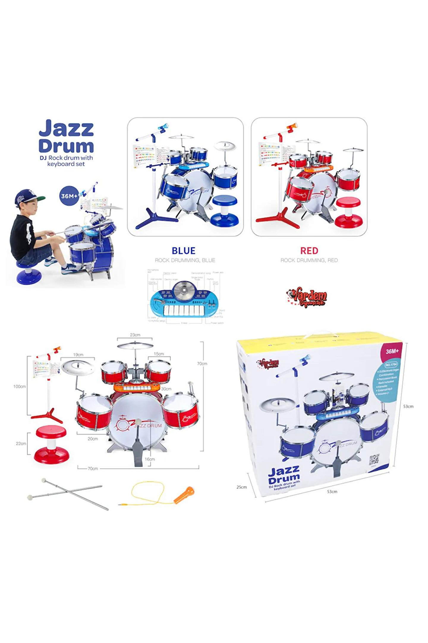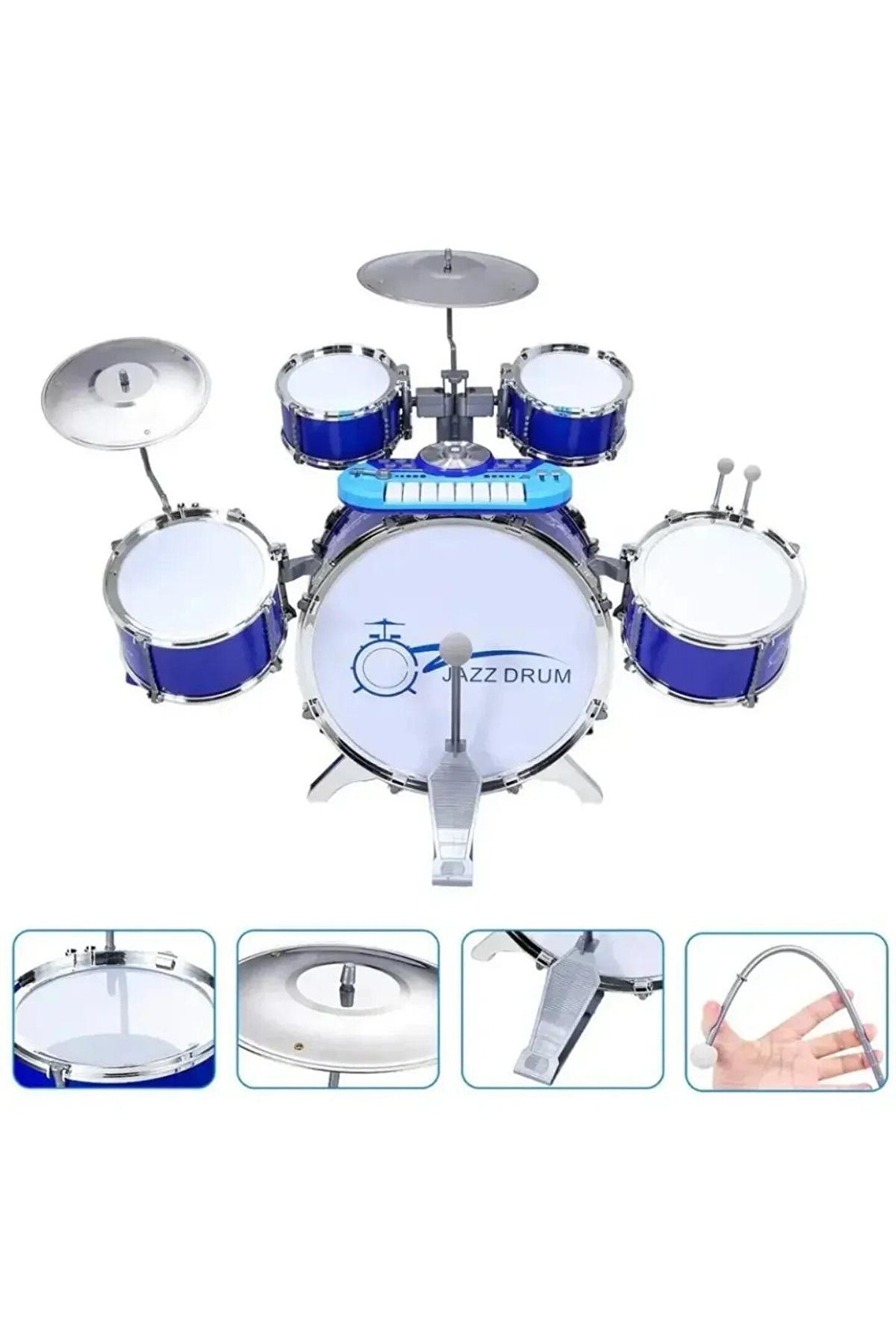 Eğitici mikrofon ve mp3 çalar: Çocuklar, kendi seslerini keşfetmeleri için eğitici mikrofon ve mp3 çalar ile interaktif bir deneyim yaşarlar. ; Bateri ve caz davul seti: Ritim duygusunu geliştirmek isteyen çocuklar için tasarlanmış bateri ve caz davul seti, minik müzisyenlere eğlenceli anlar sunar. ; Eğitim enstrüman klavye: Müzikal yetenekleri artırmak için klavye seti, çocuklara nota ve melodi öğrenme imkanı tanır. ; Renkli ve çekici tasarım: Renkli ve çekici tasarımı, çocukların ilgisini çeker ve müzikle eğlenmelerini sağlar. ; Öğretici modlar: Set, çocuklara temel müzik bilgisi ve ritim konularında eğitici modlar sunarak öğrenmeyi destekler. ; Dayanıklı ve güvenli malzemeler: Güvenlik standartlarına uygun olarak üretilmiş, dayanıklı ve çocuk dostu malzemeler kullanılmıştır. ; Küçük yaştan itibaren uygun: 3 yaş ve üzeri çocuklar için uygundur, bu da minik müzisyenlerin erken yaşlarda müzikle tanışmasını sağlar. ; Müzikal yetenek gelişimi: Set, çocukların müzikal yeteneklerini keşfetmelerine, geliştirmelerine ve keyifli bir şekilde öğrenmelerine yardımcı olur. ; Bu eğitici enstrüman seti, çocukların müzikle etkileşimde bulunarak hem eğlenmelerini hem de öğrenmelerini sağlar. ; Renkli tasarımı ve öğretici modlarıyla çocuklar, müzikal yeteneklerini geliştirmenin keyfini yaşarlar.;