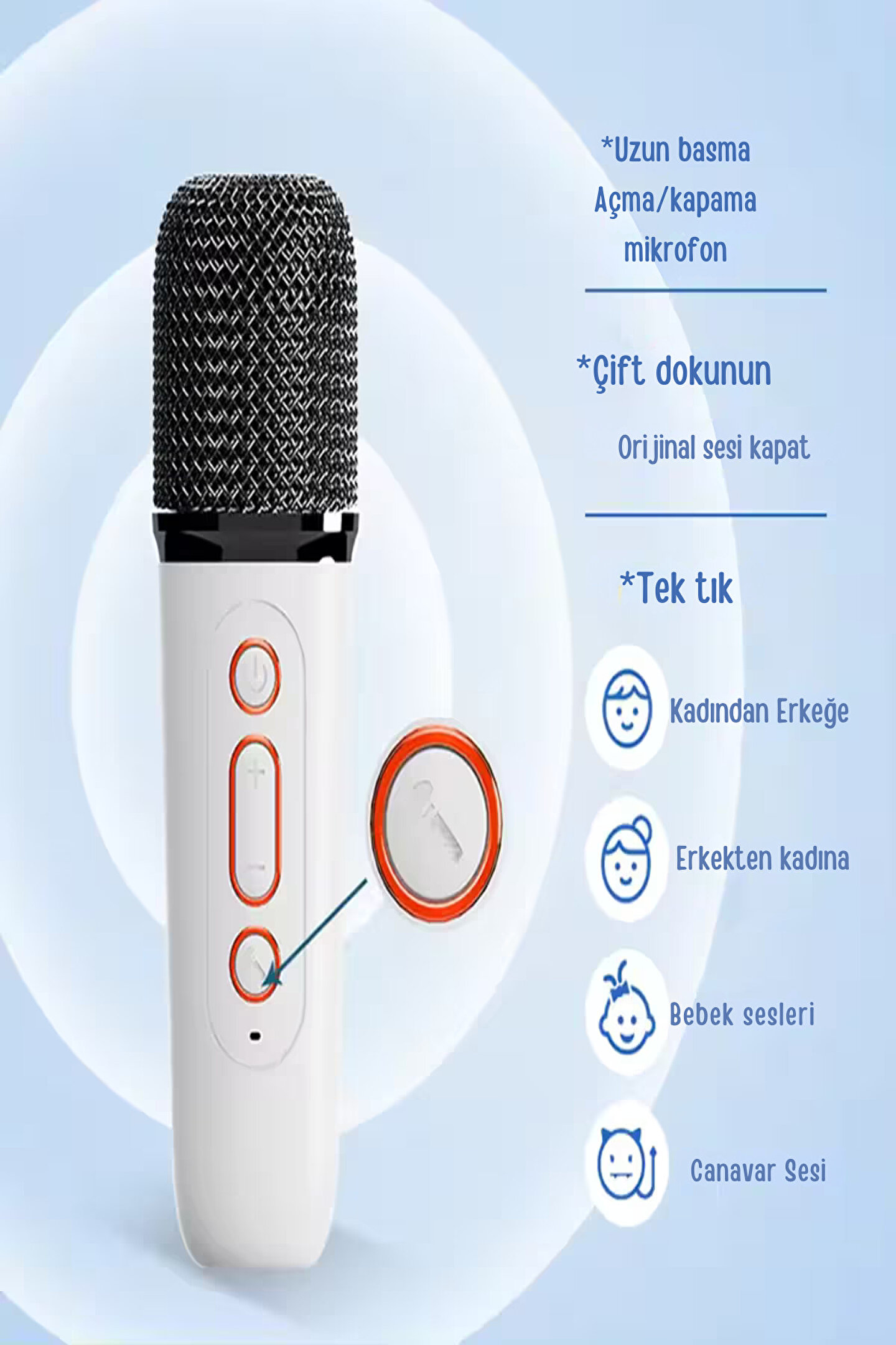 welcomein Kablosuz Taşınabilir Karaoke Bluetooth Hoparlör Mikrofon Ev ve Outdoor Çocuk ve Yetişkin Ses Bombası