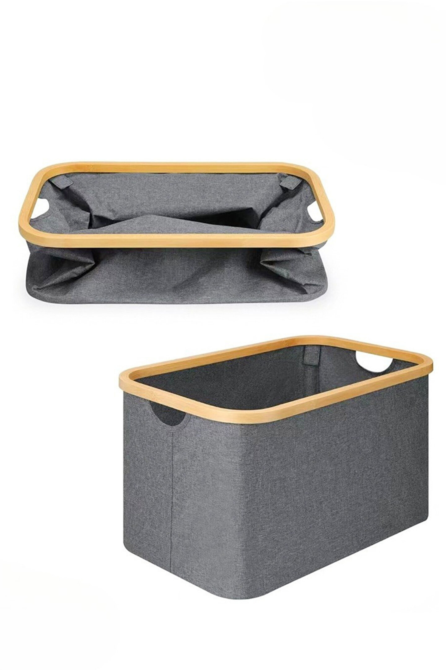 welcomein Katlanabilir Bambu Çamaşır Sepeti 50 Litre - 54x33x28 cm | Gri Kumaş, Şık ve Pratik Kirli Sepeti