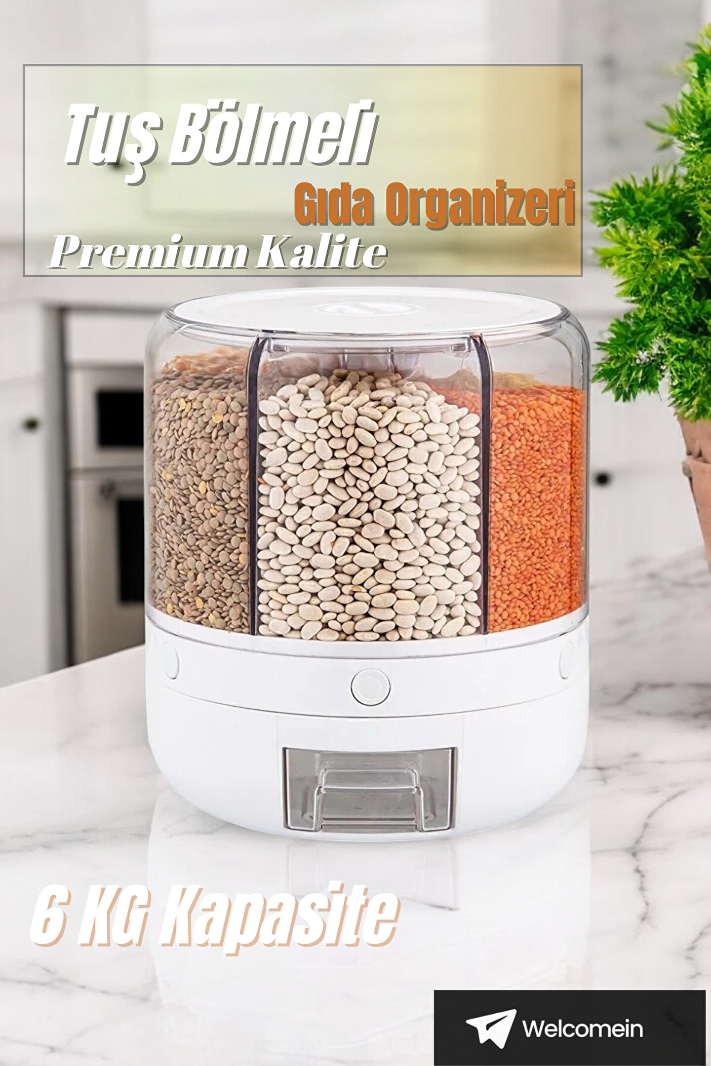 Kuru Gıda Ve Bakliyat Organizeri 360° Dönebilen 6 Bölmeli Ayrıştırıcılı Hava Geçirmez