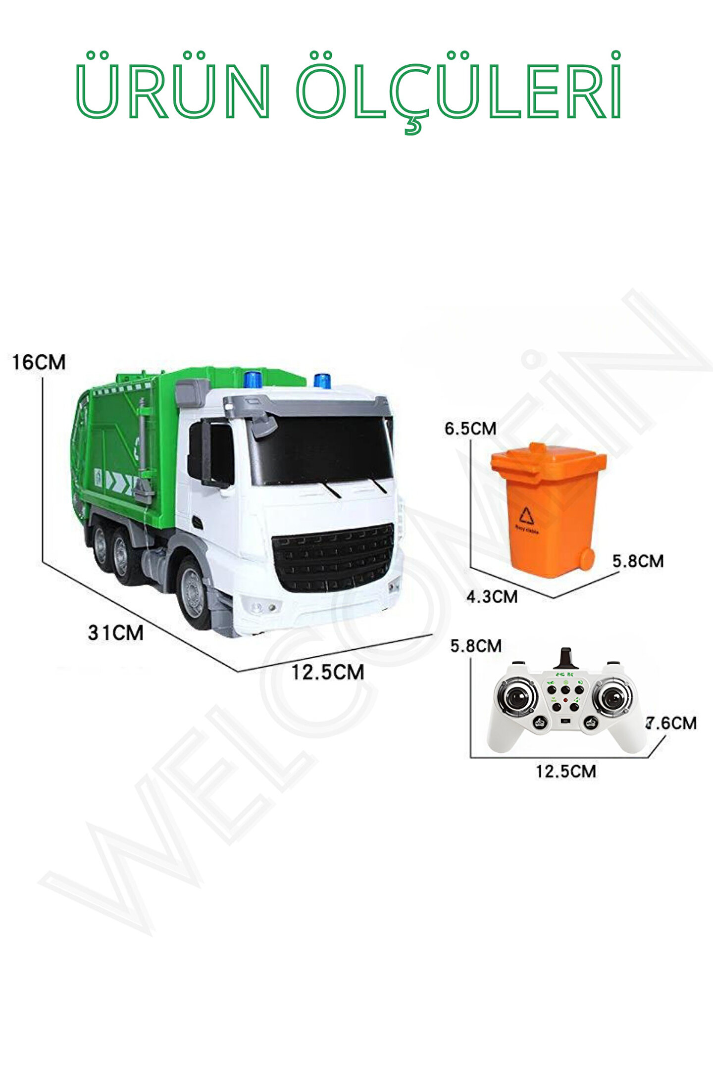 3 yaş ve üzeri çocuklar için ideal, eğlenceli ve güvenli bir oyun deneyimi sunar; 2; 4 GHz frekanslı uzaktan kumanda ile kolay kontrol imkanı sağlar, çocukların motor becerilerini geliştirmelerine yardımcı olur; 1:12 ölçek boyutuyla gerçekçi bir çöp arabası görünümüne sahiptir, minyatür detaylarıyla dikkat çeker; Işıklı ve sesli özellikleri sayesinde çocukların duyusal algısını zenginleştirir ve oyun saatlerini daha interaktif hale getirir; Şarj edilebilir bataryası ile kablosuz kullanım özgürlüğü sunar; böylece çocuklar hareket özgürlüğünü kısıtlamadan eğlenebilirler;