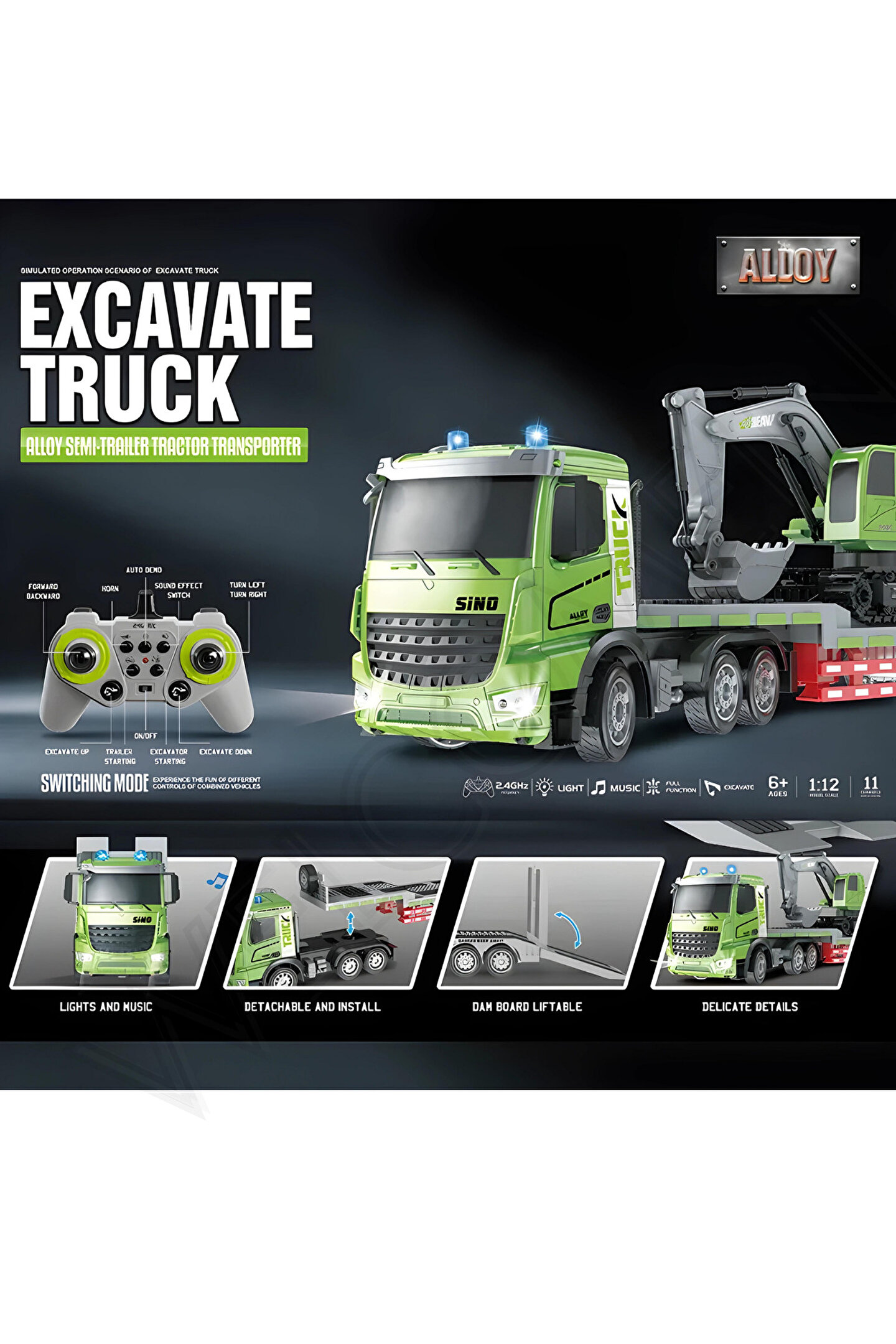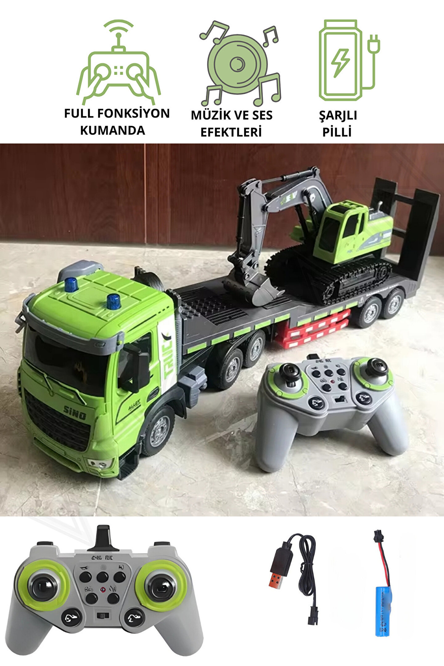 3 yaş ve üzeri çocuklar için ideal, güvenli ve eğlenceli bir oyun deneyimi sunar; 2; 4 GHz frekanslı uzaktan kumanda ile kolay kontrol imkanı sağlar, çocukların motor becerilerini geliştirir; 1:12 ölçek oranında tasarlanmış gerçekçi kepçe ve tır modelleri, minyatür dünyasında macera dolu anlar yaşatır; Işıklı ve sesli özellikleri ile çocukların duyusal algılarını zenginleştirir ve oyunu daha etkileyici hale getirir; Şarj edilebilir batarya ile uzun süreli kullanım imkanı sunar; böylece çocuklar kesintisiz eğlenceye devam edebilir;