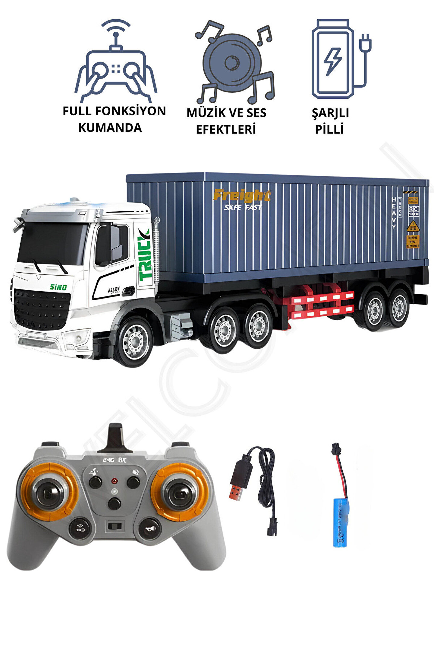 Oyuncak 2.4GHz Uzaktan Kumandalı 1:12 Ölçek Işıklı ve Sesli Konteynerlı Tır - Şarjlı Dorseli Tır