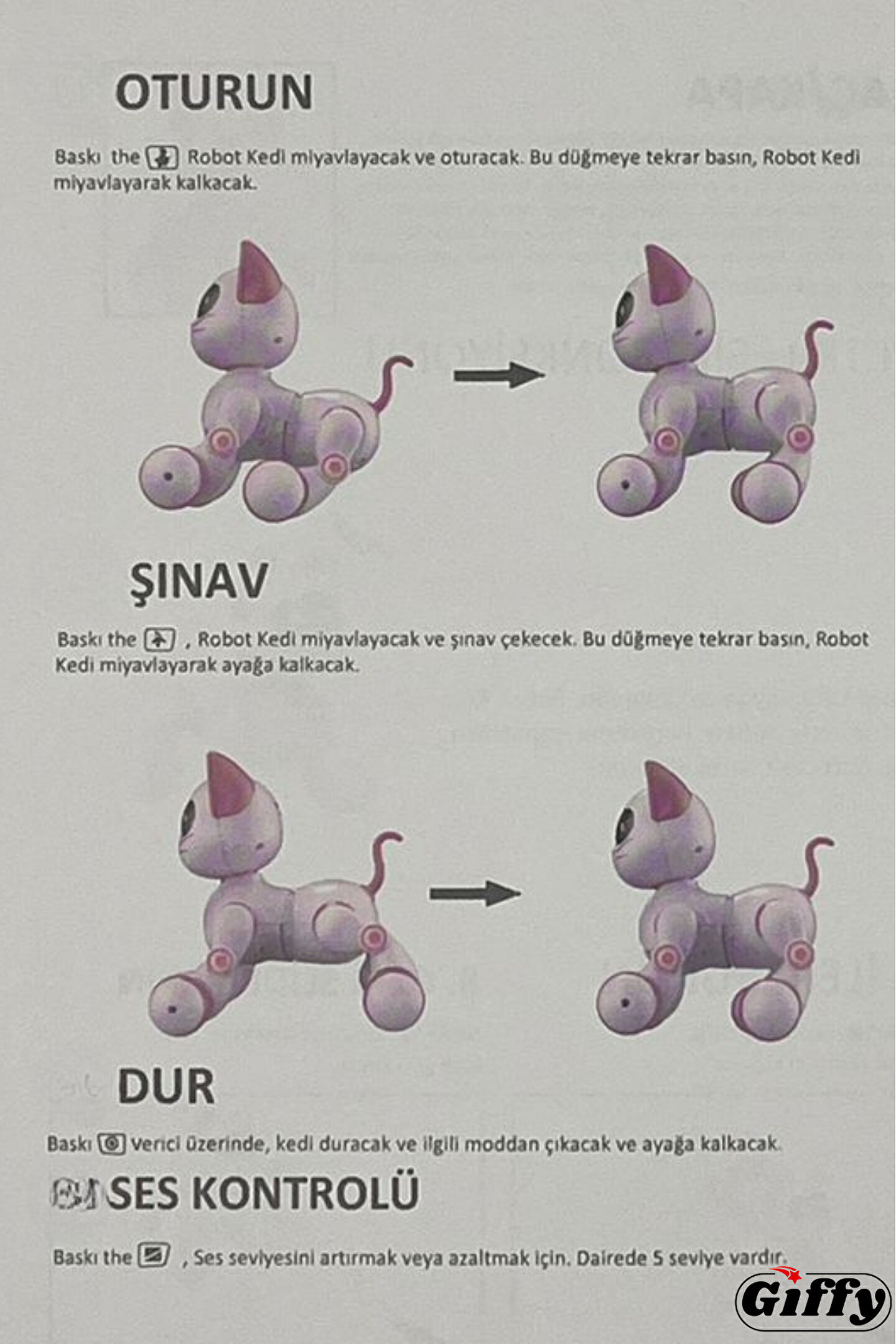 Uzaktan Kumanda: Kolay kullanım için tasarlanmış uzaktan kumanda ile robot kediyi rahatlıkla kontrol edebilirsiniz.