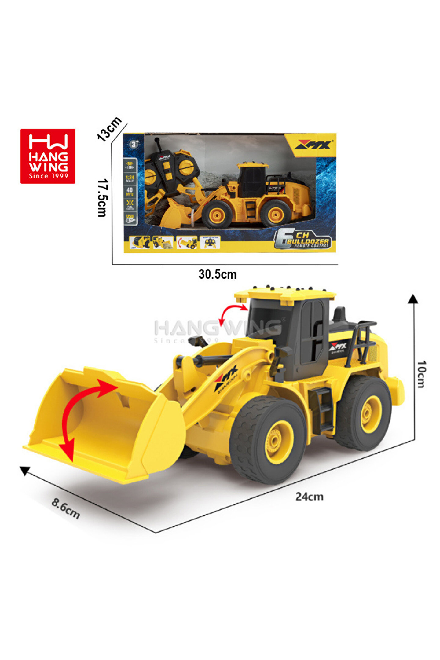 welcomein Oyuncak 40 Mhz Uzaktan Kumandalı Işıklı İş Makinası RC Bulldozer Kepçe