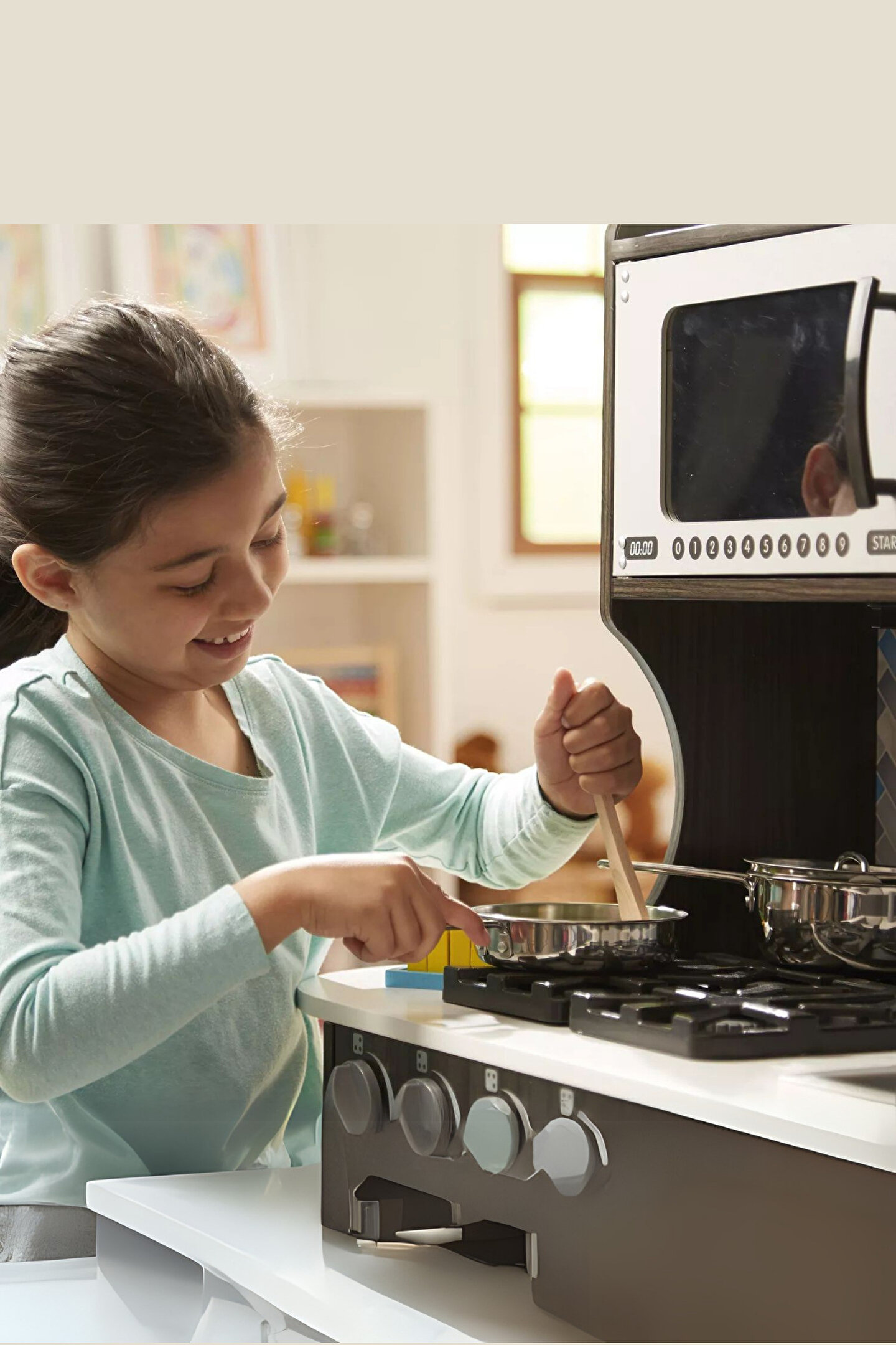 Gerçekçi Tasarım: Gerçek mutfak gereçlerine benzer şekilde tasarlanmış, çocukların hayal gücünü kullanarak eğlenceli yemek oyunları oynamalarını sağlar.