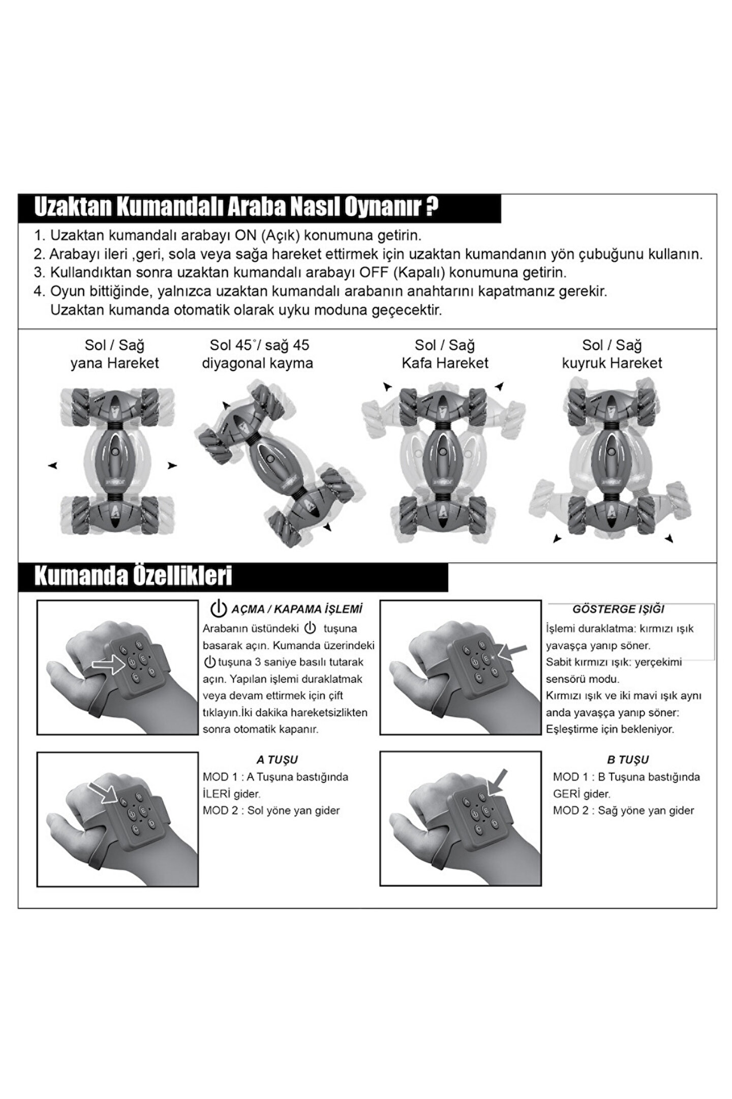 welcomein Oyuncak Bilekten Kontrollü Şarjlı 2.4G Işıklı Ve Müzikli Bileklik Kumandalı Akrobat Araba