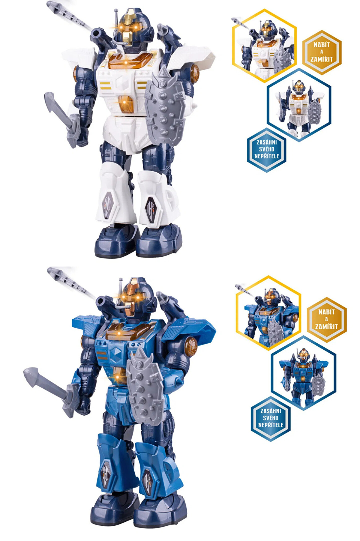 - 3 yaş ve üzeri çocuklar için ideal bir oyuncak seçeneği sunar, onların eğlenceli vakit geçirmelerini sağlar.; - Işıklı ve müzikli özellikleriyle dikkat çeken bu robot, çocukların görsel ve işitsel duyularını geliştirir.; - Roket atan fonksiyonu sayesinde çocuklar, aksiyon dolu oyunlar oynayarak hayal güçlerini kullanırlar.; - Kılıç ve kalkan gibi aksesuarlarla donatılmış olan savaşçı robot, çocukların rol yapma oyunlarına yeni bir boyut katar.; - 360° dönebilme özelliği ile çocukların motor becerilerini ve koordinasyon yeteneklerini destekler.; - Pilli çalışması sayesinde kolayca kullanılabilir ve çocukların enerji dolu oyunlarına eşlik eder.;