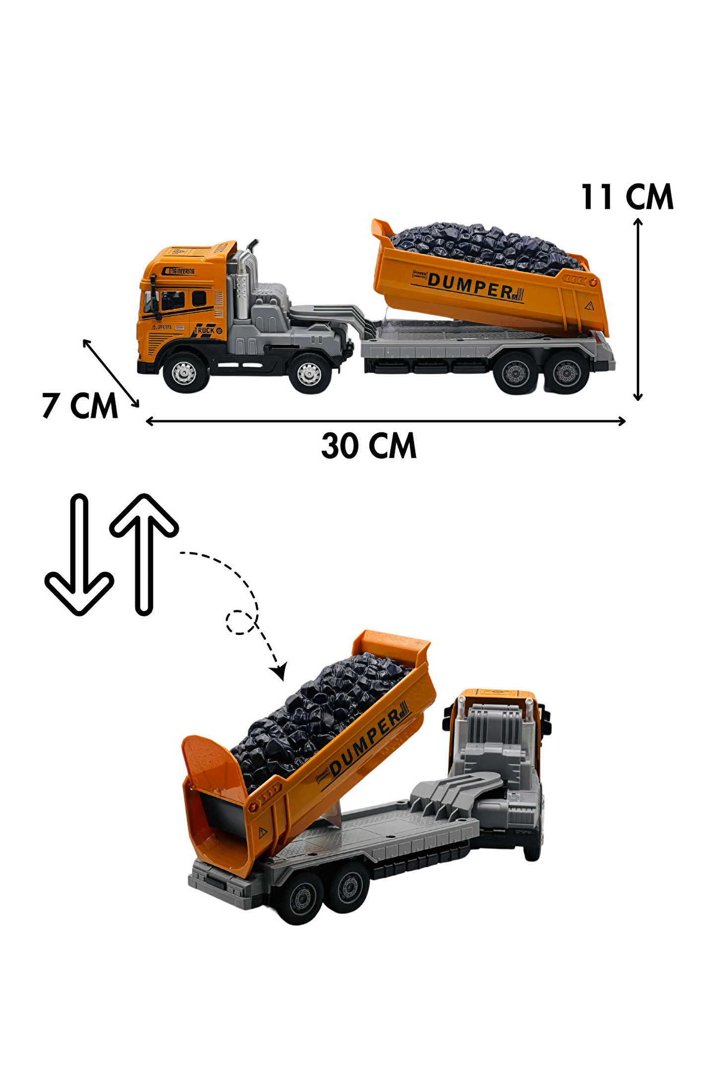 welcomein Oyuncak Kutulu İş Makinesi Sesli Işıklı Çek Bırak Metal Vinç, Beton Mikseri, Kamyon, Kepçe 30 Cm