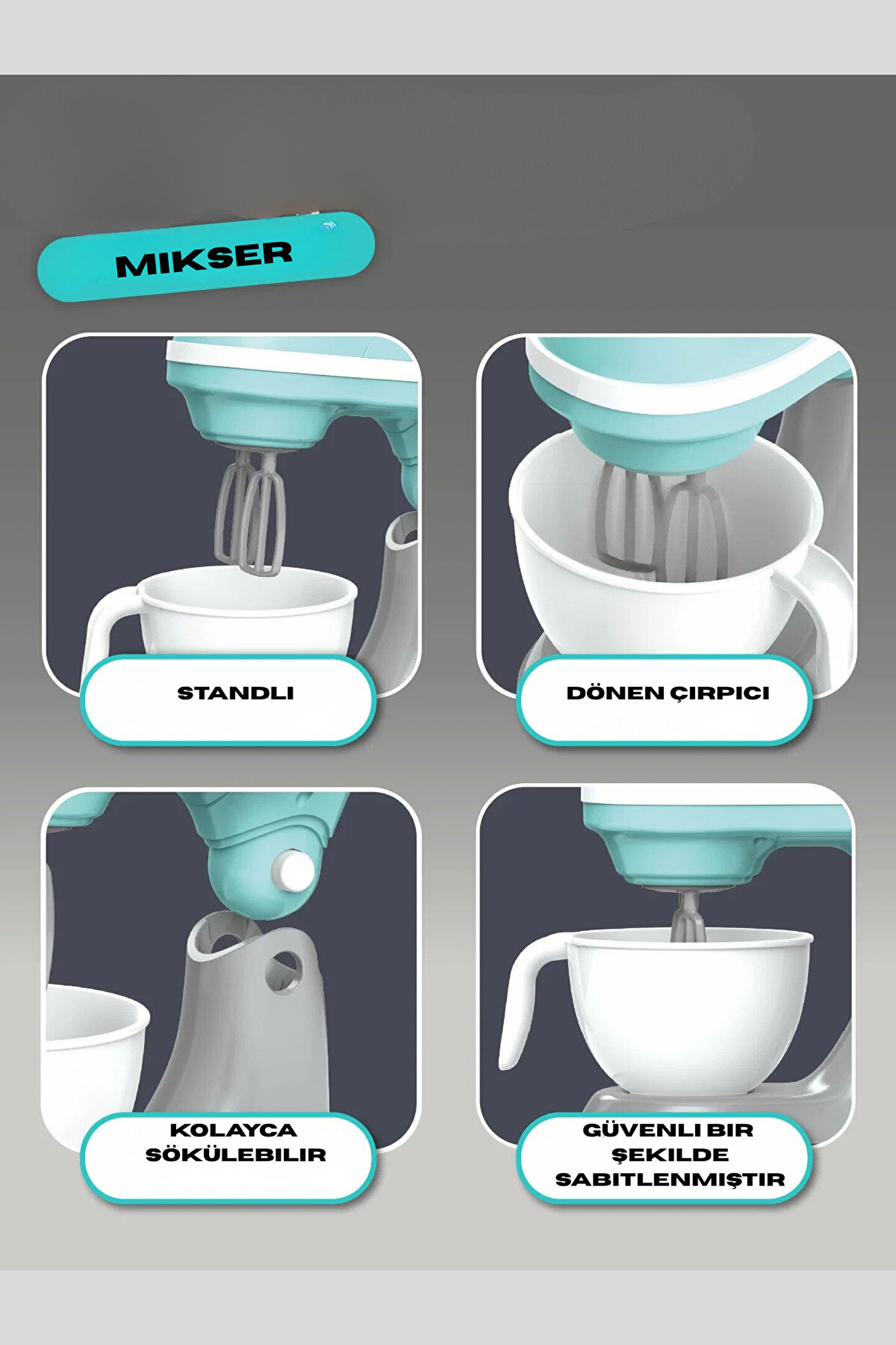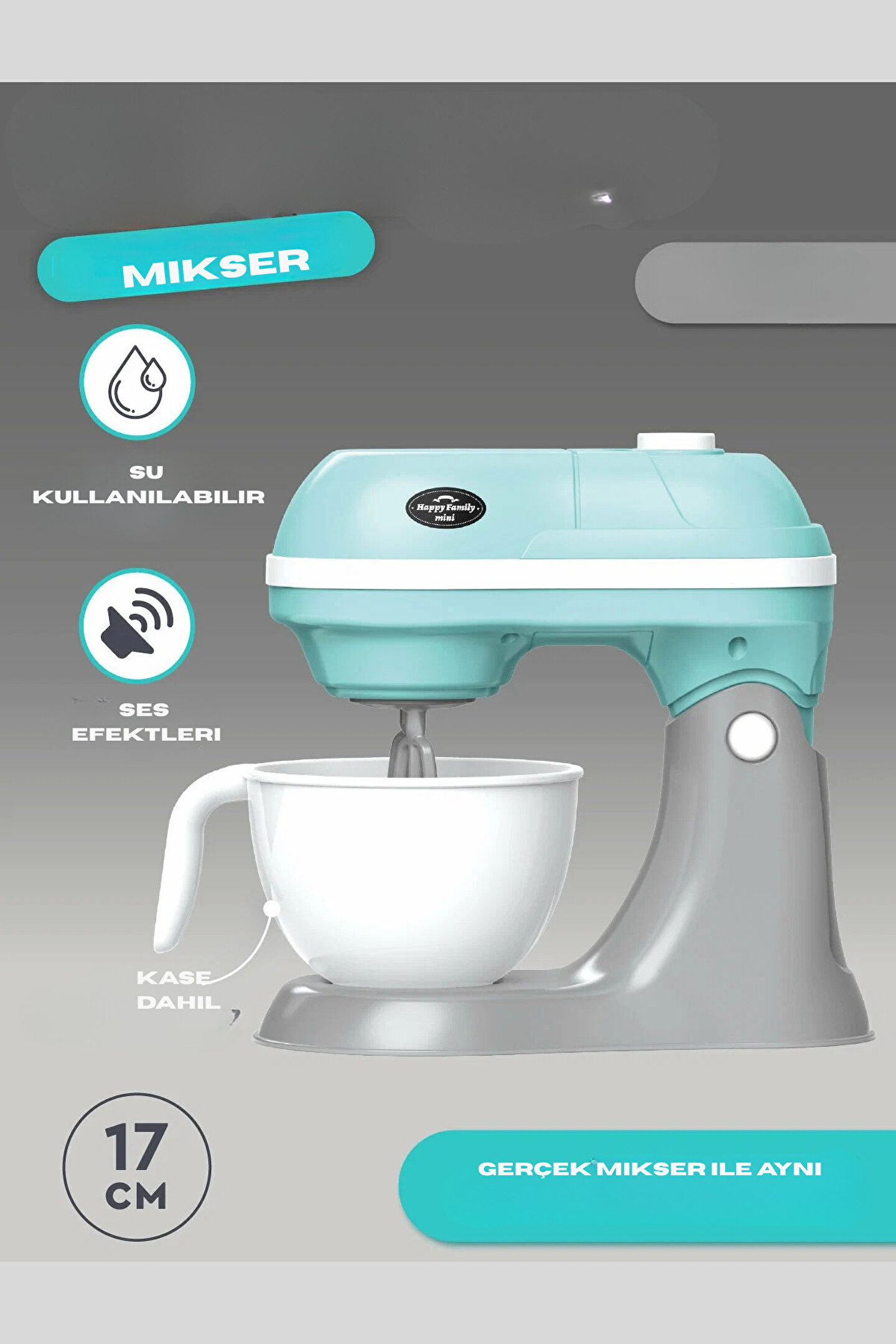 3 yaş ve üzeri çocuklar için ideal bir hediye seçeneği olarak öne çıkan bu oyuncak, onların hayal gücünü ve yaratıcılığını geliştirir.; - Diğer özellikler: Bu oyuncak, çocukların oyun saatlerini daha da eğlenceli hale getiren ekstra özellikler barındırır.; - Normal özellik: Standart işlevselliği sayesinde, çocukların mutfak oyunlarını gerçekçi bir şekilde deneyimlemelerini sağlar.; - Paket içeriği: 1'li paket halinde sunulan bu ürün, çocukların hemen oyunlarına başlayabilmeleri için gerekli tüm parçaları içerir.; - Ürün uyarıları: Çocukların güvenliği için gerekli tüm uyarılar bu üründe belirtilmiştir.; - Menşei: Çin ana karasında üretilen bu oyuncak, kalite standartlarına uygun olarak tasarlanmıştır.;
