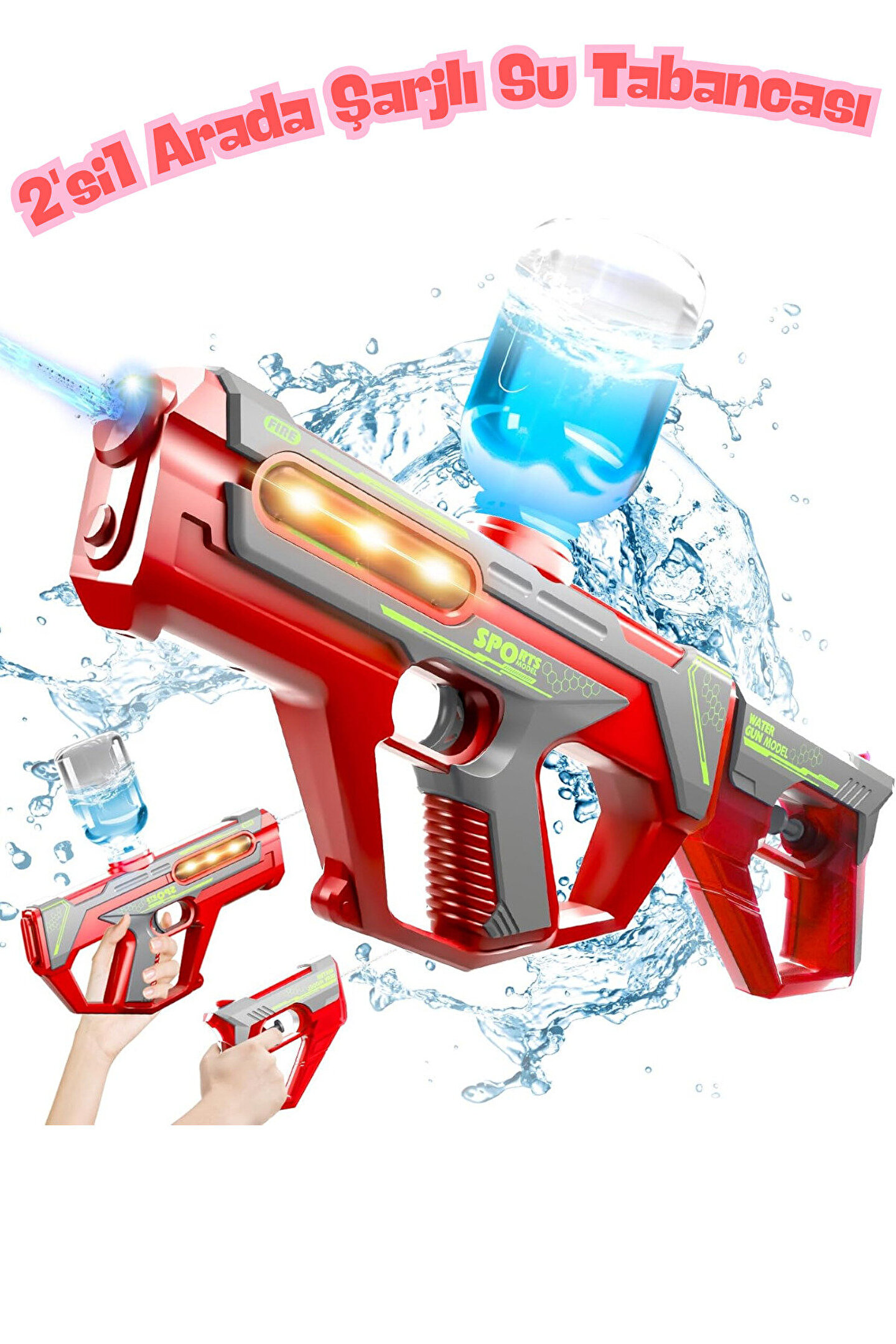 Oyuncak Şarjlı Ledli Işıklı Su Tabancası ve Tüfek 2IN1