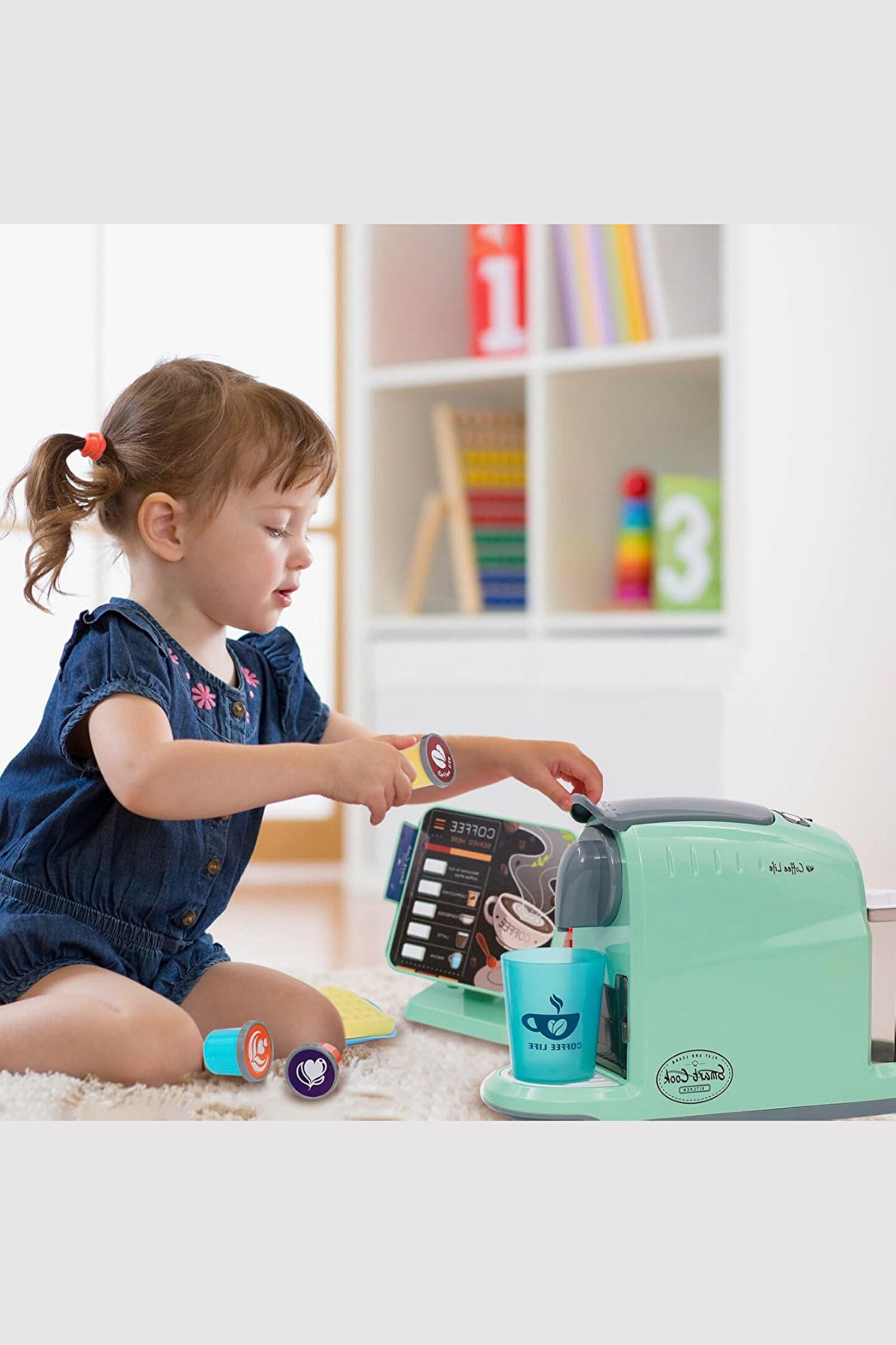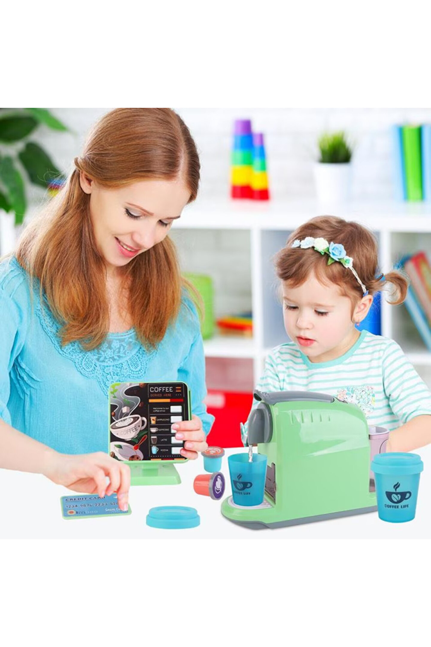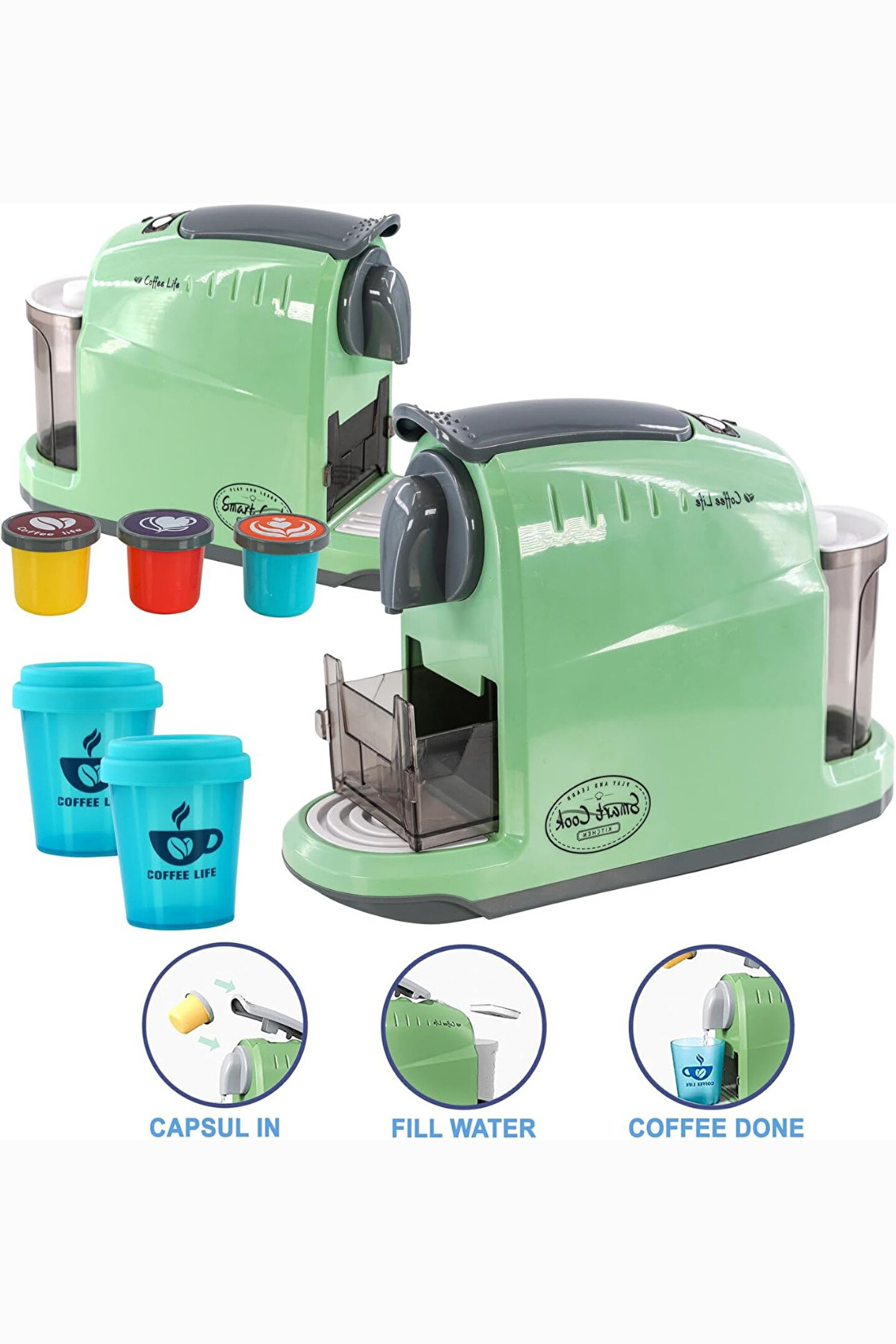 - Fonksiyonel tasarımı sayesinde gerçek bir kahve makinesine benzeyen bu oyuncak, çocukların motor becerilerini ve el-göz koordinasyonunu geliştirmelerine yardımcı olur.