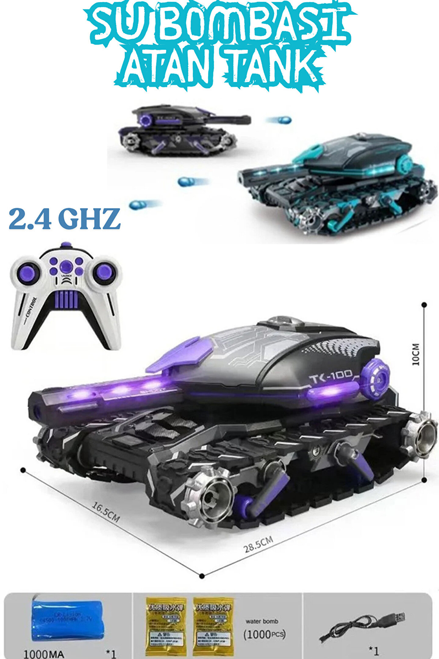 welcomein Oyuncak Uzaktan Kumandalı Sesli Ve Işıklı 2.4 Ghz Su Bombası Atan Tank