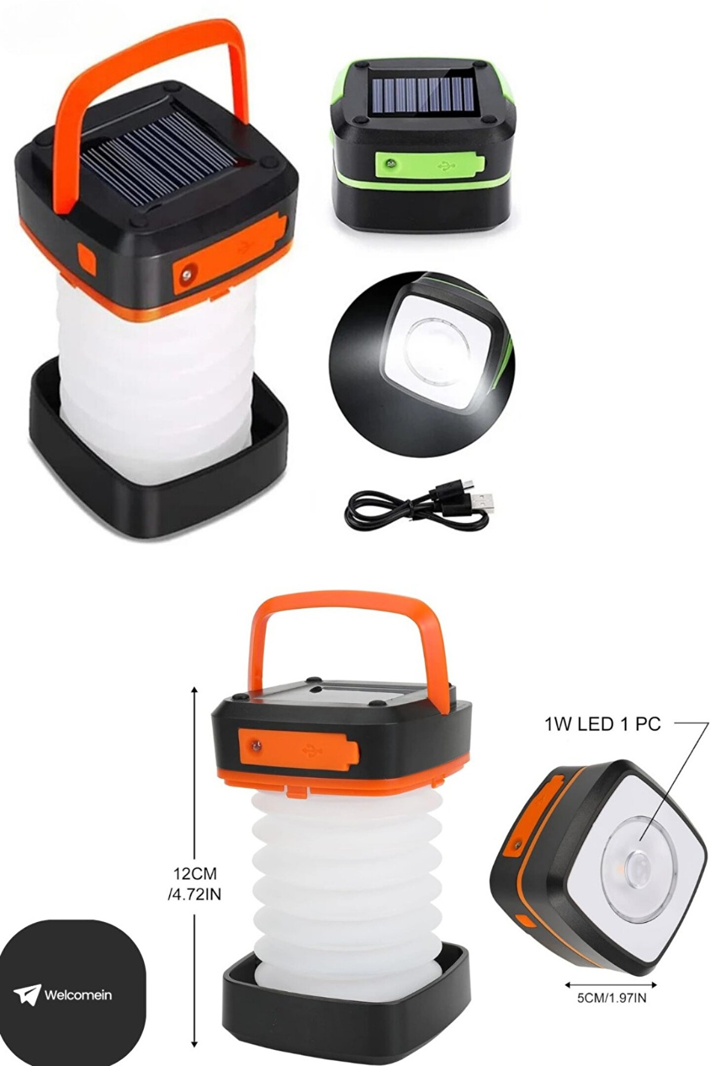 welcomein Portatif Katlanabilir Askılı Kamp, Bahçe ve Kitap Okurken Kullanılabilen Çok Amaçlı Lamba