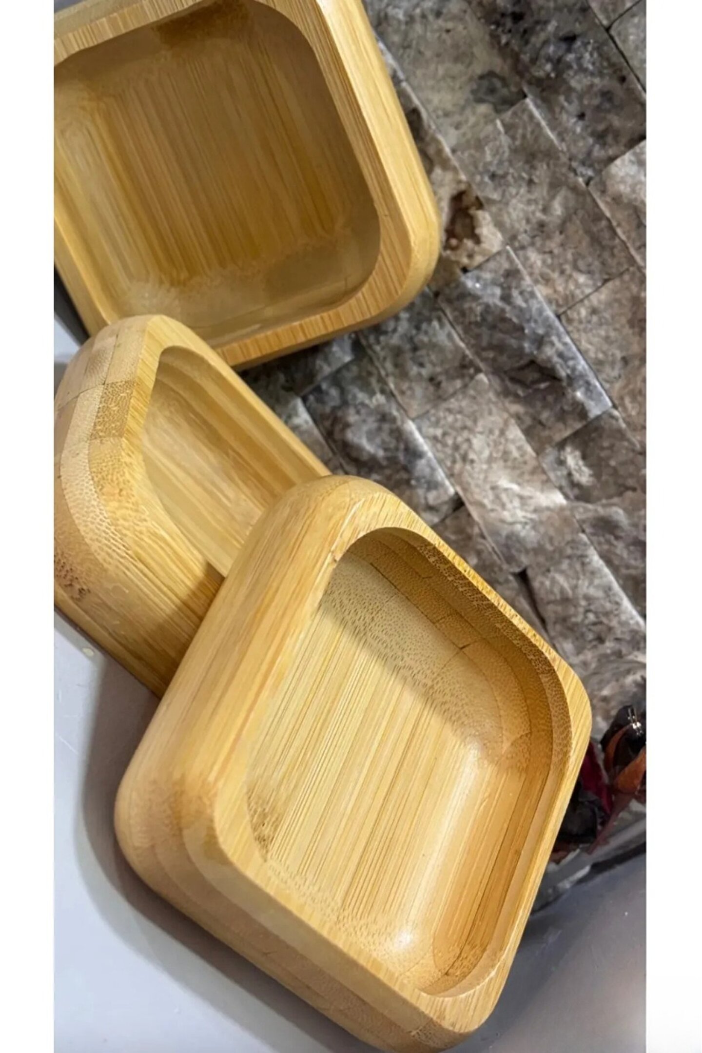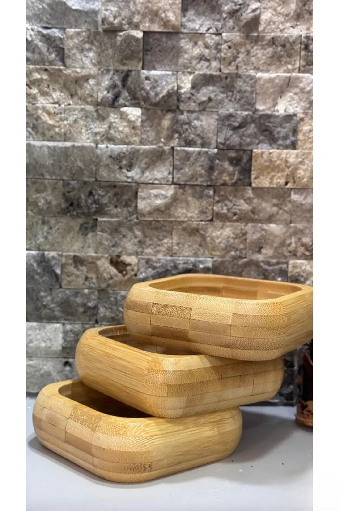 welcomein Premium 3lü Doğal Bambu Dekoratif Kahvaltılık Sunum ve Çerezlik Kase Seti Ahşap Dekoratif Sade Kase