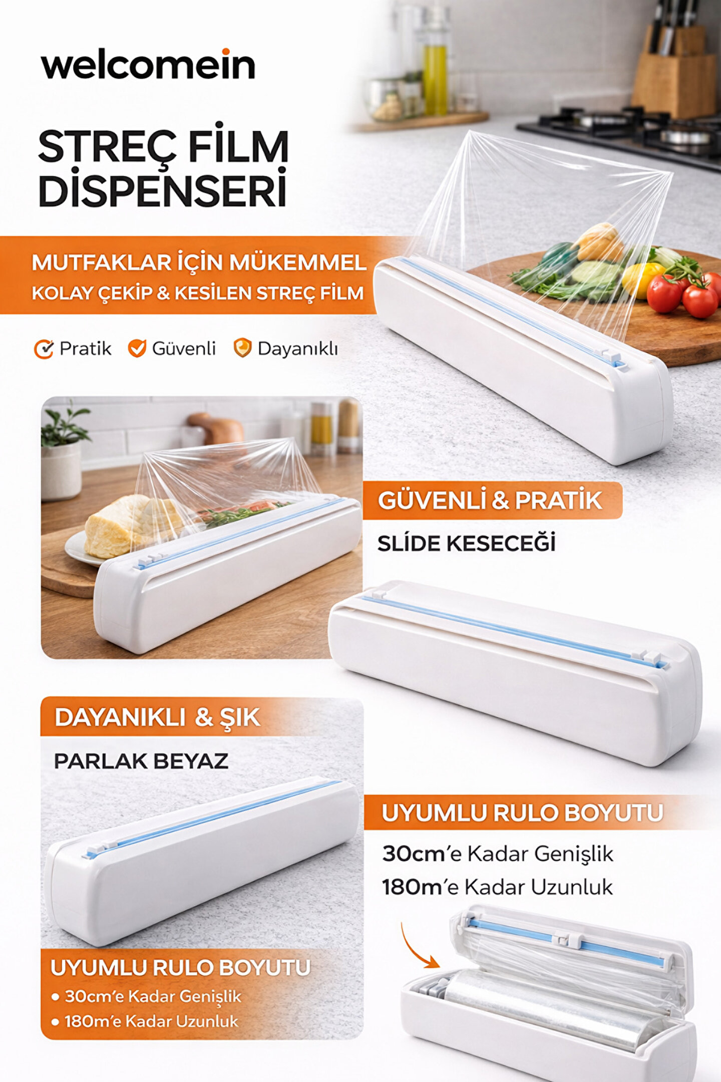 Streç filmi kolayca çekin, kayar kesici ile zahmetsizce kesin.